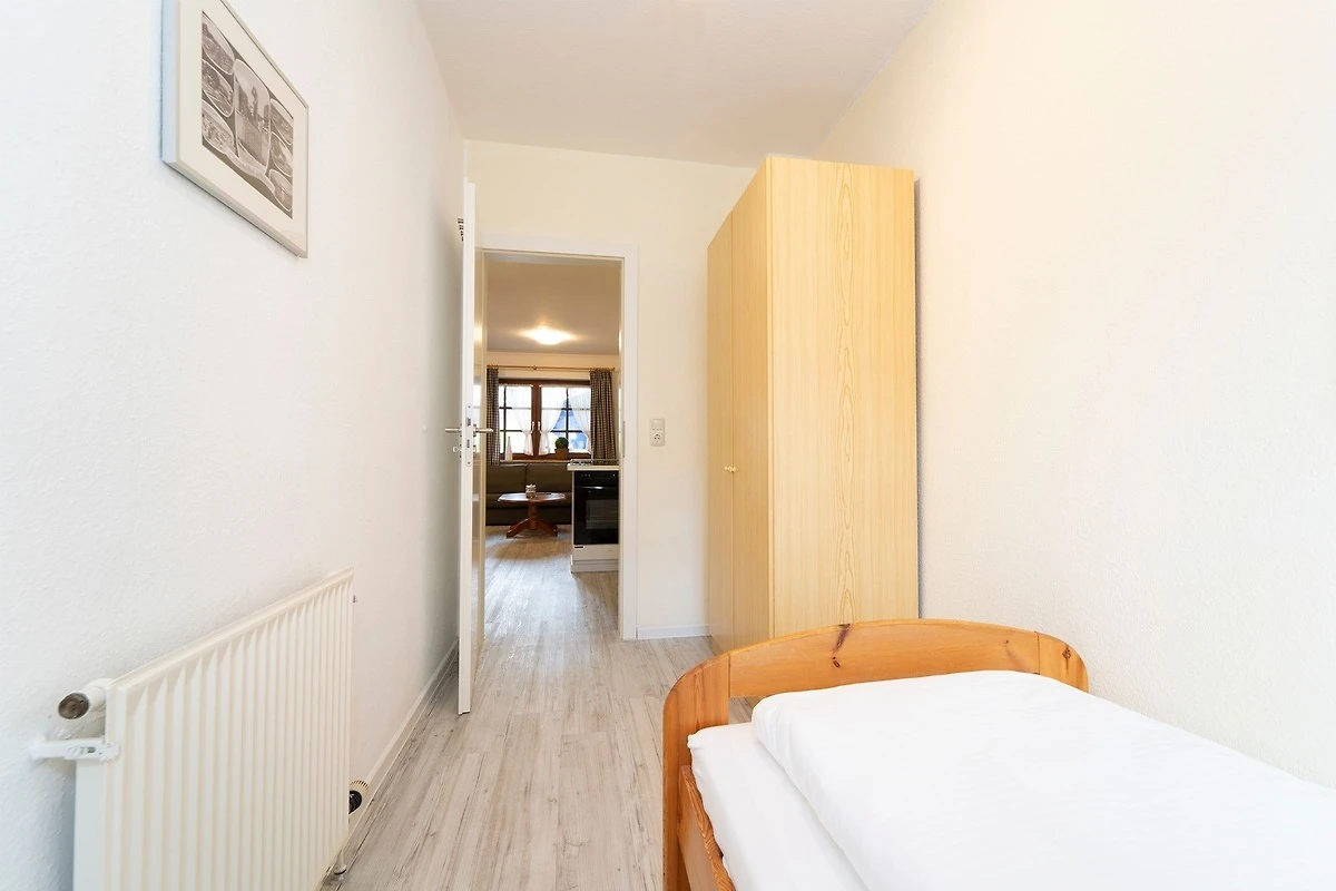 Schlafzimmer 2: 1 Einzelbett (90x200 cm), Kleiderschrank, Verdunkelung