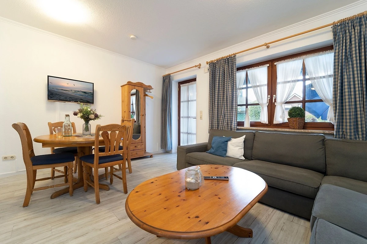 Erleben Sie die schönsten Tage des Jahres in der strandnahen und trotzdem ruhig gelegenen Ferienwohnung. Das modern und hochwertig eingerichtete Objekt bietet viel Platz und besticht durch seine praktische Raumaufteilung. Das Wohnzimmer präsentiert sich mit Essplatz und gemütlicher Sitzgruppe mit TV-Gerät. Hier haben Sie auch Zutritt auf die anliegende möblierte Südterrasse. Die offen gestaltete Küche mit Geschirrspülmaschine und allen notwendigen Küchenutensilien lässt Sie mühelos Ihre Lieblings-Menüs zubereiten. Nach einem schönen Urlaubstag an der Küste stehen Ihnen zwei Schlafräume zur Verfügung: Ein Zimmer verfügt über ein Doppelbett (180x200 cm) und einen Kleiderschrank, in dem anderen Zimmer stehen ein Einzelbett (90x200 cm) und ein Kleiderschrank. Das grosszügige Duschbad ist hell gefliest.