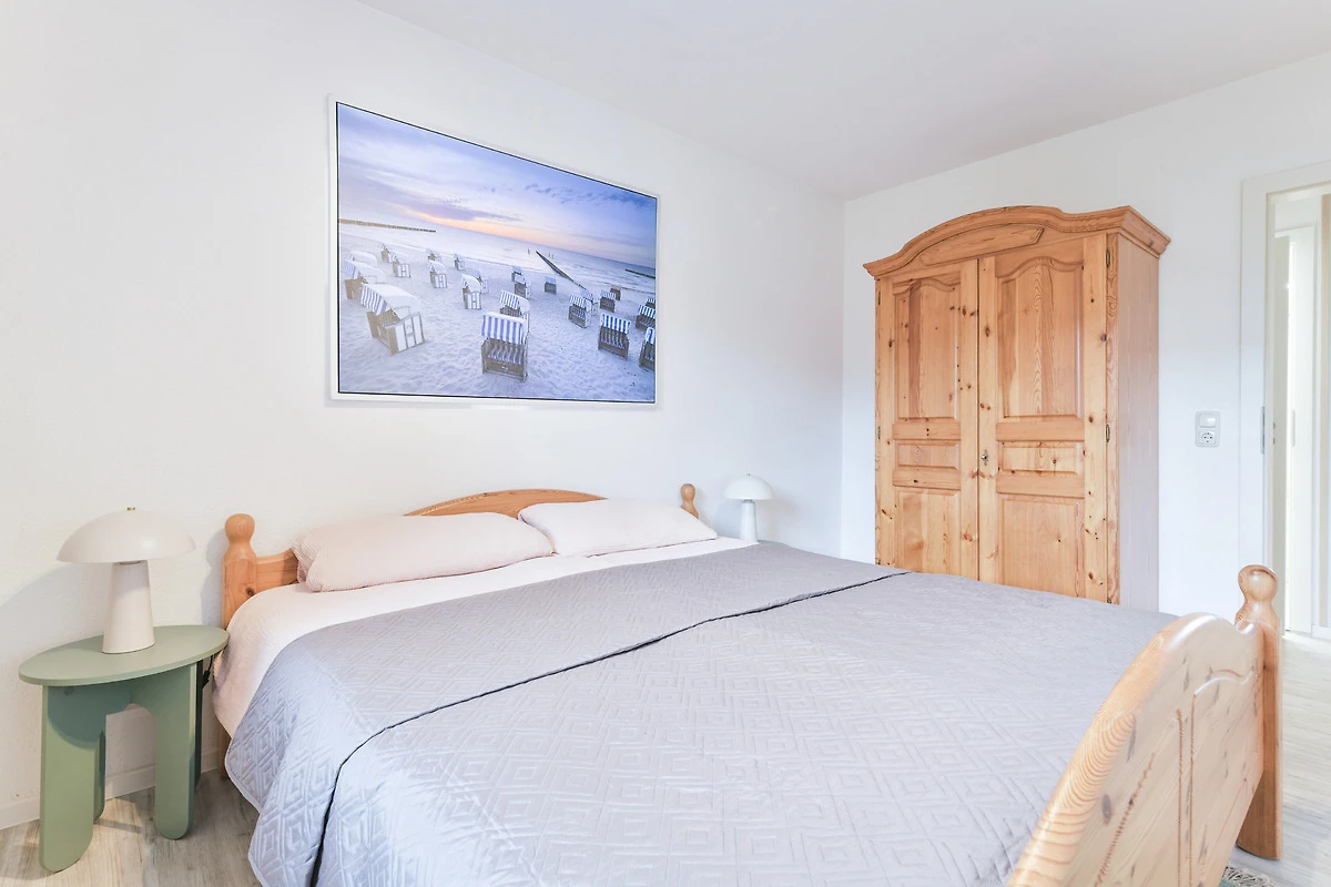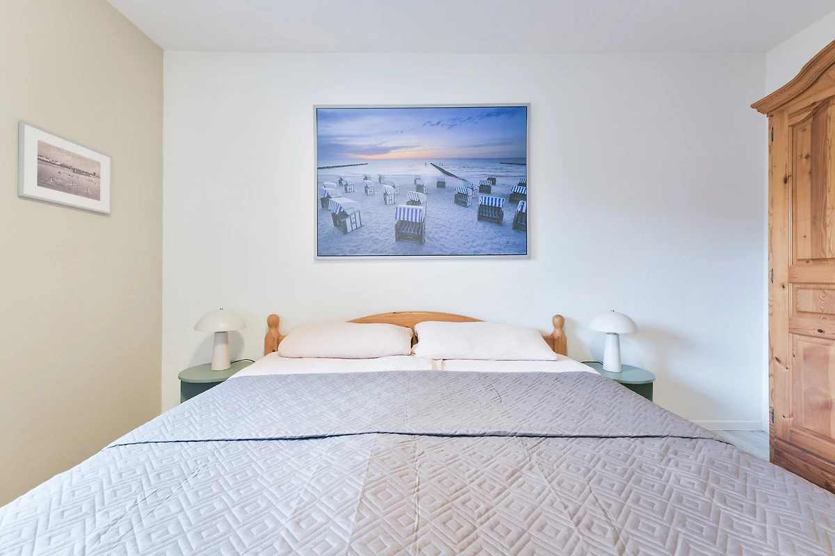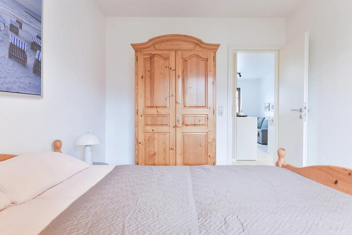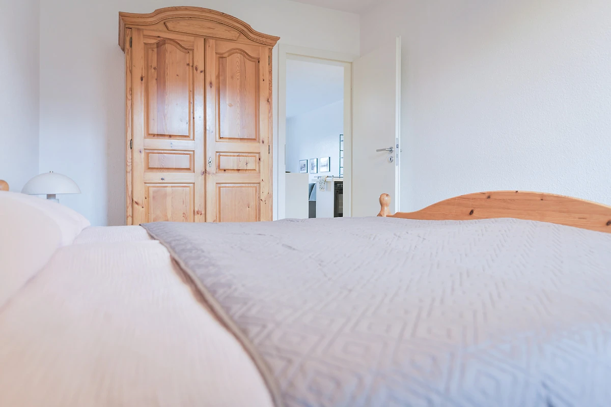 Kommen Sie rein – Sie werden sich sofort wohl fühlen. Das helle Wohnzimmer punktet mit seiner grossen, gemütlichen Sofalandschaft mit TV-Gerät sowie einer bequemen Essecke. Zum Verweilen lädt natürlich auch der grosszügige möblierte Süd-Balkon ein. Hier können Sie herrlich die Sonnenstunden geniessen – wie wäre es abends dazu mit einem Glas Wein? Die moderne Küche mit Geschirrspüler ist in den Wohnbereich integriert. Ihre gute Ausstattung zaubert sicher jedem Hobby-Koch ein zufriedenes Lächeln ins Gesicht. Angenehme Nachtruhe finden Sie in den beiden Schlafräumen: Ein Zimmer verfügt über ein Doppelbett (180x200 cm) und eins über zwei getrennt stehende Betten (90x200 cm und 170x200 cm). In beiden befindet sich jeweils ein Kleiderschrank für Ihre Urlaubsgarderobe. Das hell geflieste Duschbad lässt Sie gut in den neuen Urlaubstag starten.