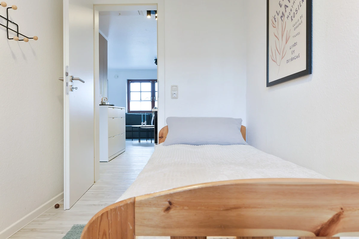 Schlafzimmer 2: 1 Einzelbett (90x200cm), 1 Einzelbett (90x170cm), Kleiderschrank, Verdunkelung (Rollo)