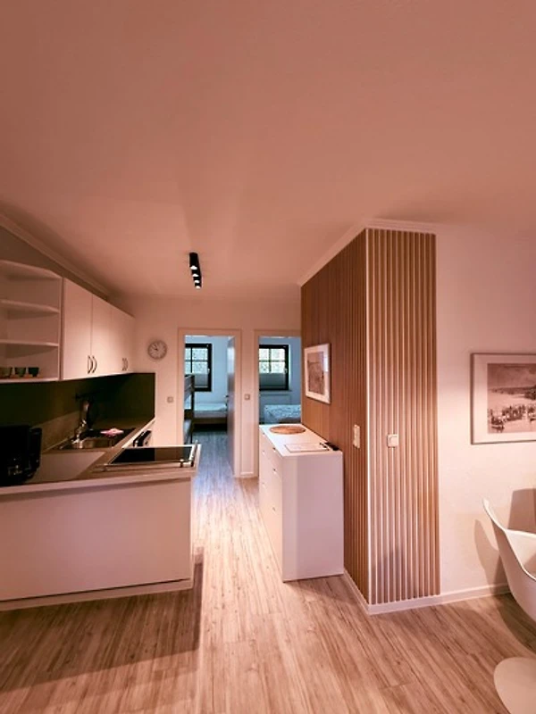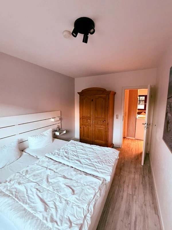 Sie suchen Ruhe und Erholung? Dann sind Sie hier genau richtig. Die schöne Ferienwohnung besticht durch ihre gemütliche und durchdachte Aufteilung im Wohnbereich: Sie haben die Wahl zwischen einer grossen, kuscheligen Sofalandschaft und einer stylischen Essecke. Ein TV-Gerät sorgt für Unterhaltung. Auf der möblierten Süd-Terrasse können Sie Ihre wohl verdiente Auszeit bei Sonnenschein geniessen. Zurück im Wohnbereich: Die offene, moderne Küche mit Spülmaschine und heller Front bietet alles, was Sie für eine Selbstversorgung im Urlaub brauchen. Wunderbar schlafen werden Sie sicherlich in den beiden Schlafzimmern: Ein Raum ist mit einem Doppelbett (180x200 cm) und einem Kleiderschrank ausgestattet. In dem anderen Raum befinden sich ein Etagenbett (je 90x200 cm), ein einzelnes Kinderbett (90x170 cm) und ein Kleiderschrank. Das schicke, komfortable Duschbad mit Handtuchwärmer garantiert einen guten Start in den den neuen Urlaubstag.