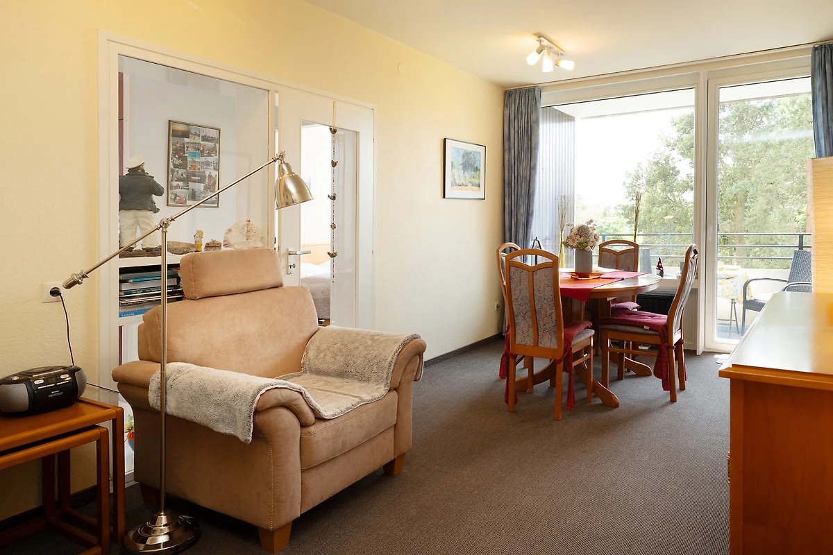 In der 1. Reihe von Kellenhusen: strandnahe 2-Zimmer-Ferienwohnung im 3. Stock mit Balkon, Fahrstuhl und einer Wohnfläche von ca. 42 m² für 2- 3 Personen.
