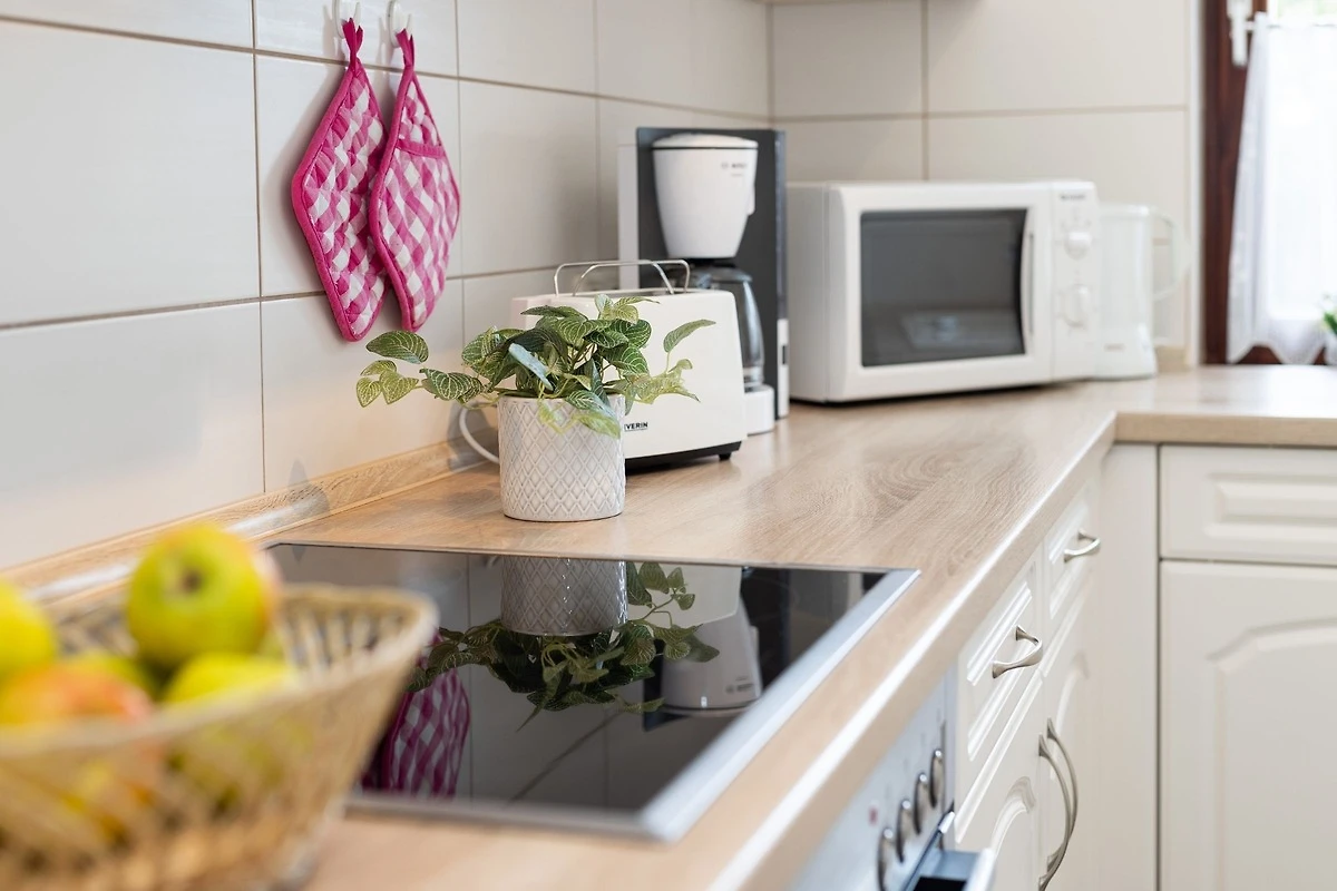 Für Sie ist Platz und Komfort im Urlaub besonders wichtig? Dann treten Sie näher – das gepflegte Ferienhaus Ariane am Kornfeld ist genau das richtige Objekt für Sie. Die schöne Bank vor der Tür wartet sicher schon auf Sie. Das helle, grosszügige Wohnzimmer empfängt Sie mit 2 kuscheligen Sofas. Hier können Sie prima zusammensitzen, tiefgründige Gespräche führen oder natürlich auch fernsehen. Ein gemütlicher Lese-Sessel steht an der Terrassentür. Durch die Hecken ist die möblierte Terrasse gut geschützt und sehr gemütlich. Gehen Sie hier Ihre Reiselektüre durch und planen Sie wunderbare Ausflüge entlang der Ostseeküste. Es gibt so viel zu entdecken. Zauberhaft entspannen können Sie natürlich auch in dem grossen, eingezäunten Garten. Hier stehen Ihnen zum Beispiel ein Strandkorb sowie Sonnenliegen zur Verfügung und für die kleinen Gäste gibt es eine Schaukel. Was will man mehr? Zurück im Wohnbereich wartet eine grosszügige Ess-Ecke auf Sie – das Besondere: eine Durchreiche zur Küche. Diese ist im Landhaustil gehalten und wird Sie begeistern. Im Erdgeschoss befindet sich zudem ein modernes Gäste-WC mit Fenster.