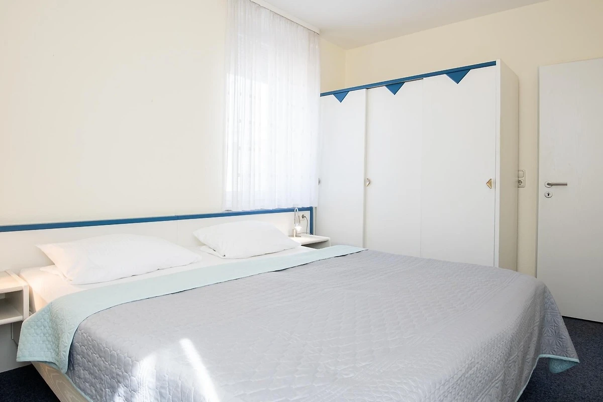 Schlafzimmer: 1 Doppelbett (ca. 180x200 cm), Kleiderschrank, Verdunkelungsmöglichkeit