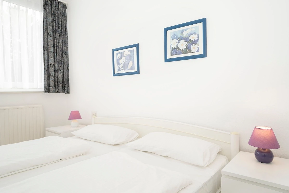 Schlafzimmer: 1 Doppelbett (2x 90x200 cm), Verdunkelung (Gardinen)