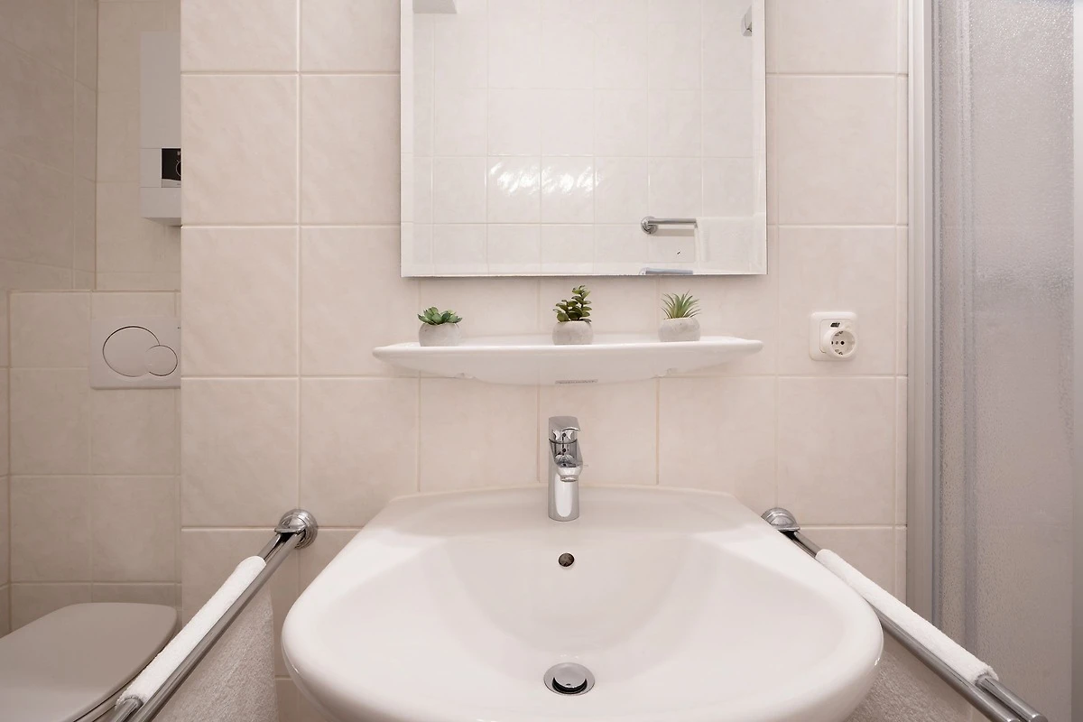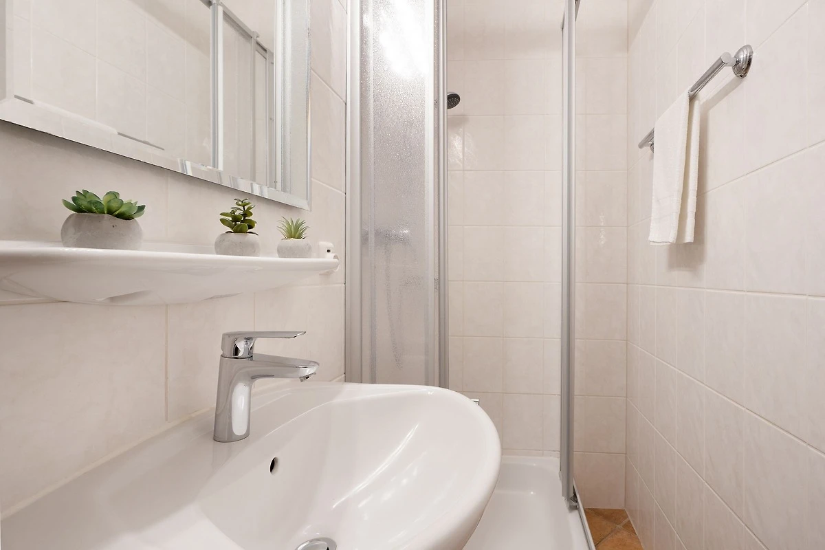 Eine schöne Wohnung, wir hatten sie nicht das erste Mal gebucht. Die Dusche sollte über die gesamte Raumbreite erneuert werden.