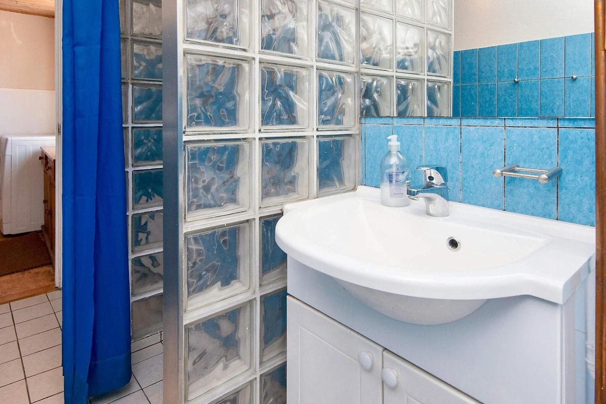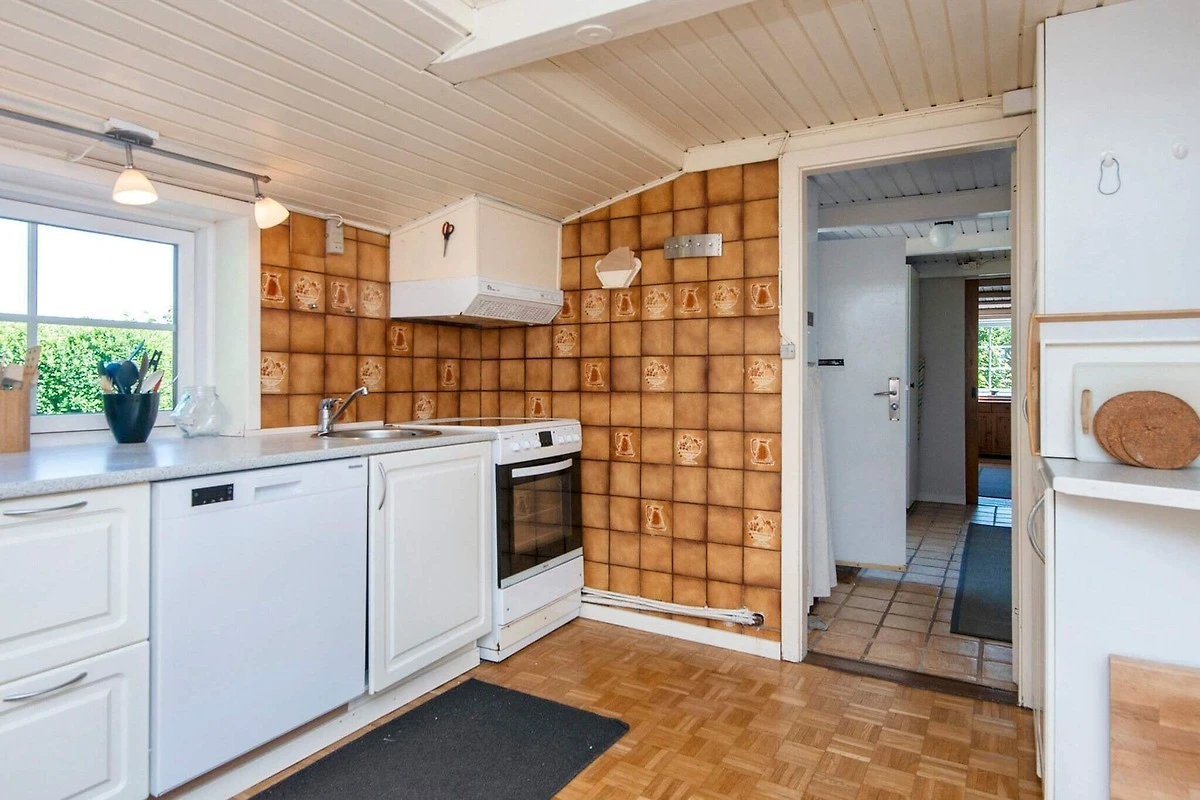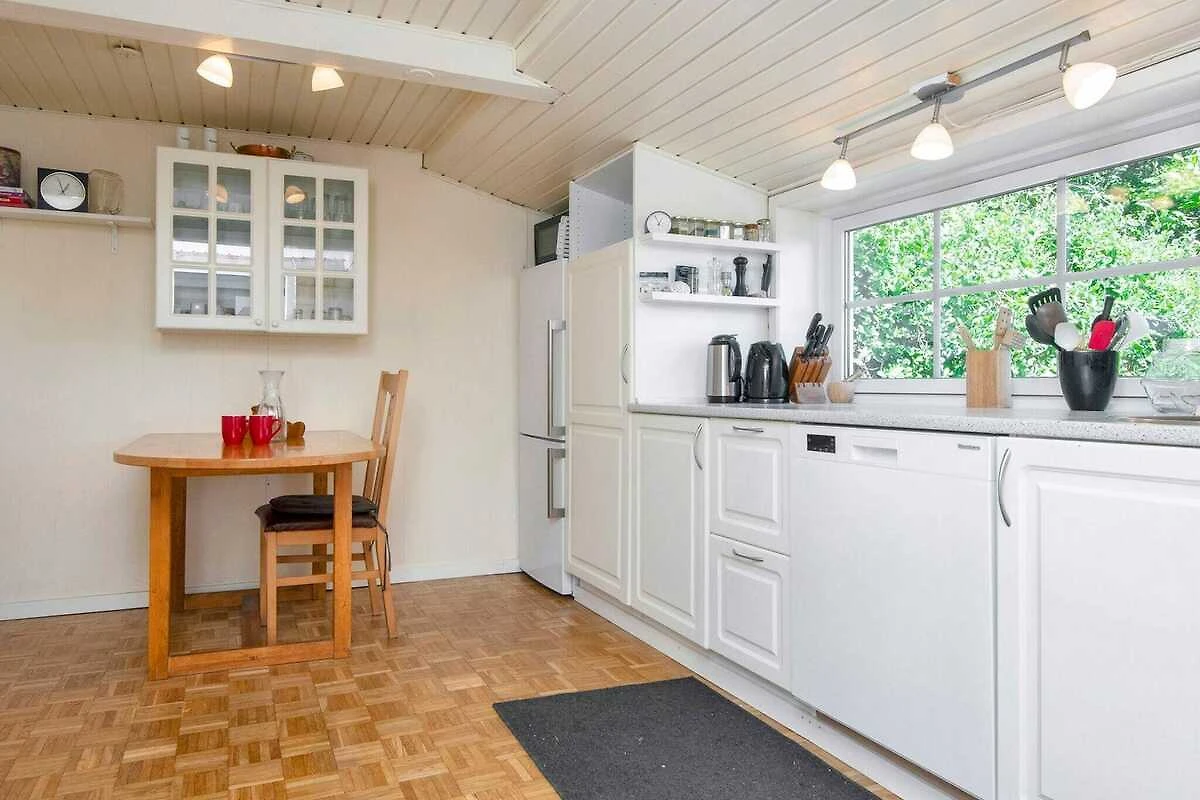 Wohnzimmer(DVD-Spieler), Küche(Kochherd(elektrisch), Kaffeemaschine, Mikrowelle, Spülmaschine, Kühlschrank, Tiefkühlschrank(1-59L)), Wohn-/Schlafzimmer(TV(dänische Fernsehsender)), Schlafzimmer(Doppelbett, Kinderbett, Hochstuhl), Schlafzimmer(2x Einzelbett), Schlafzimmer(2x Einzelbett), Badezimmer(Waschbecken, Dusche, Toilette), Heizung(elektrisch), Terrasse, Garten, Gartenmöbel, Grill, Spielgeräte, Luft-Luft-Wärmepumpe