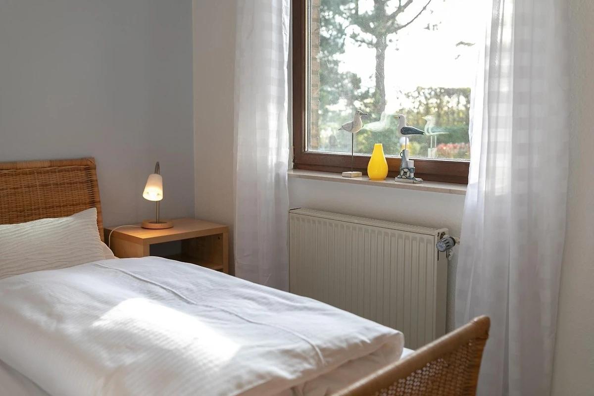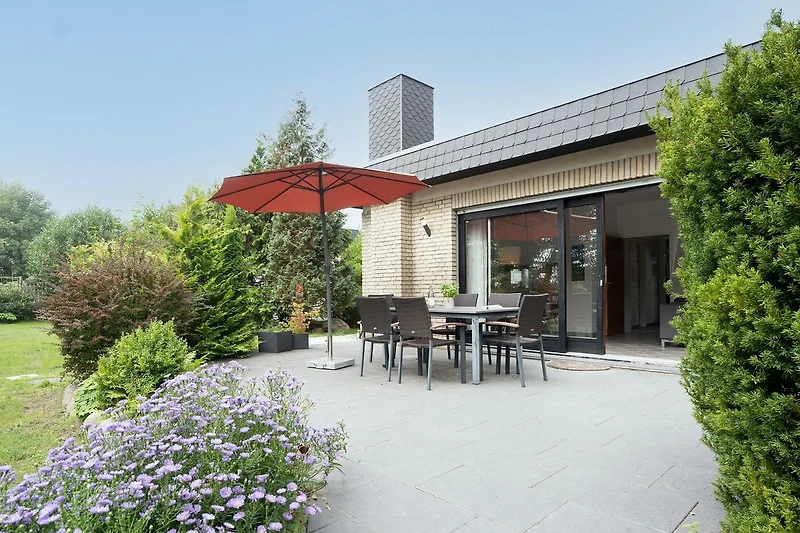 Die Lage des kleinen Hauses ist wunderbar,nur über die Düne und das Wasser lockt. Das Haus liegt wunderbar von schönen Bäumen und Sträuchern umgeben. Die Aufteilung der Räume im Haus ist sehr gut, man fühlt sich einfach wohl.
