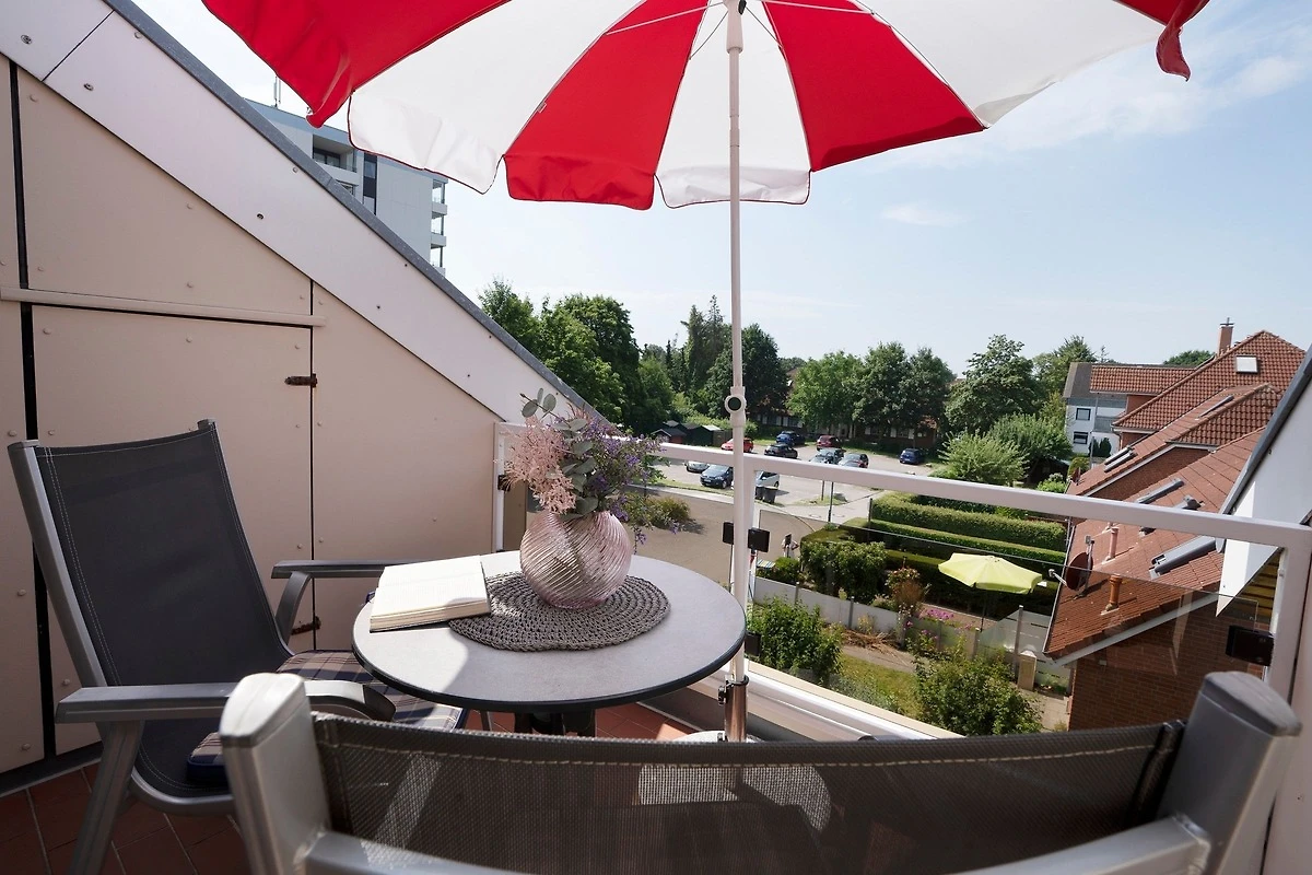 Hier lacht die Sonne – die Dachgeschosswohnung befindet sich im Apartmenthaus Im Sonnenwinkel und ist freundlich-hell eingerichtet. Die gemütlichen Dachschrägen verleihen dem Objekt eine ganz besondere Atmosphäre. Im Wohn-/Ess-Bereich empfängt Sie ein komfortables Sofa und ein gemütlicher TV-Sessel, bei dem Sie die Füsse hochlegen können. Entspannen Sie hier abends und überlegen Sie, wie Sie Ihren nächsten Urlaubstag gestalten möchten. Wieder ans Meer? Oder doch ein Ausflug entlang der Küste? Gleich nebenan geht es raus auf den Süd-Balkon. Hier sitzen Sie schön geschützt und können das schöne Wetter und dazu ein gutes Buch geniessen. Zurück im Wohnbereich präsentiert sich eine moderne, gut ausgestattete Küche mit Geschirrspüler. Nachdem Sie hier Ihr Lieblings-Menü gezaubert haben, können Sie gleich nebenan in der Sitz-Ecke Platz nehmen und speisen. Nach einem wunderbaren Urlaubstag finden Sie im Doppelbett (2x 90x200 cm) im Schlafzimmer eine himmlische Ruhe. Die schöne Foto-Tapete lässt Sie sicher von der Ostsee träumen. Das moderne Duschbad mit Tageslicht verspricht einen guten Start in den Tag. Praktisch: Eine Waschmaschine und ein Trockner stehen Ihnen im Haus kostenfrei zur Verfügung.