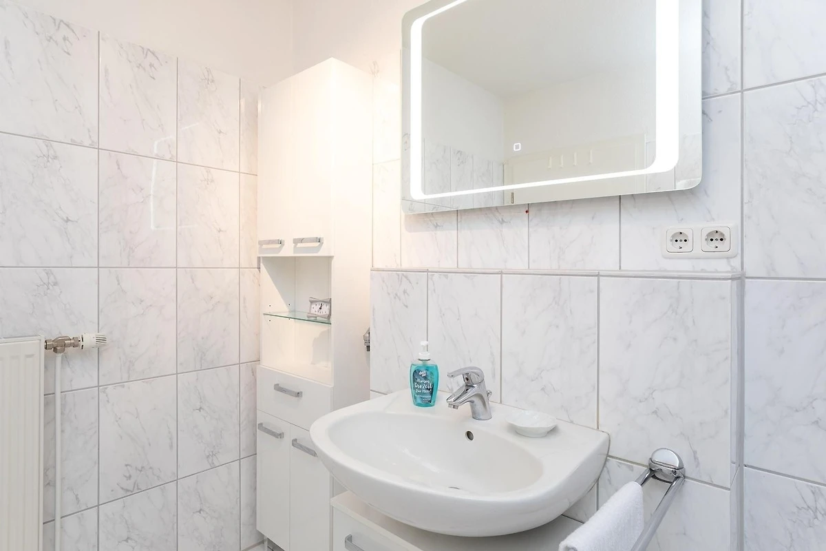 Ich habe mich insgesamt in der Wohnung sehr wohlgefühlt . Die Einrichtung war gemütlich, auch etwas maritim eingerichtet und interessante Urlaubslektüre vorhanden. Das Bett war rückenschonend und in den Schränken genügend Platz. Gestört hat das sehr undurchsichtige Fernsehprogramm. Insgesamt gut.