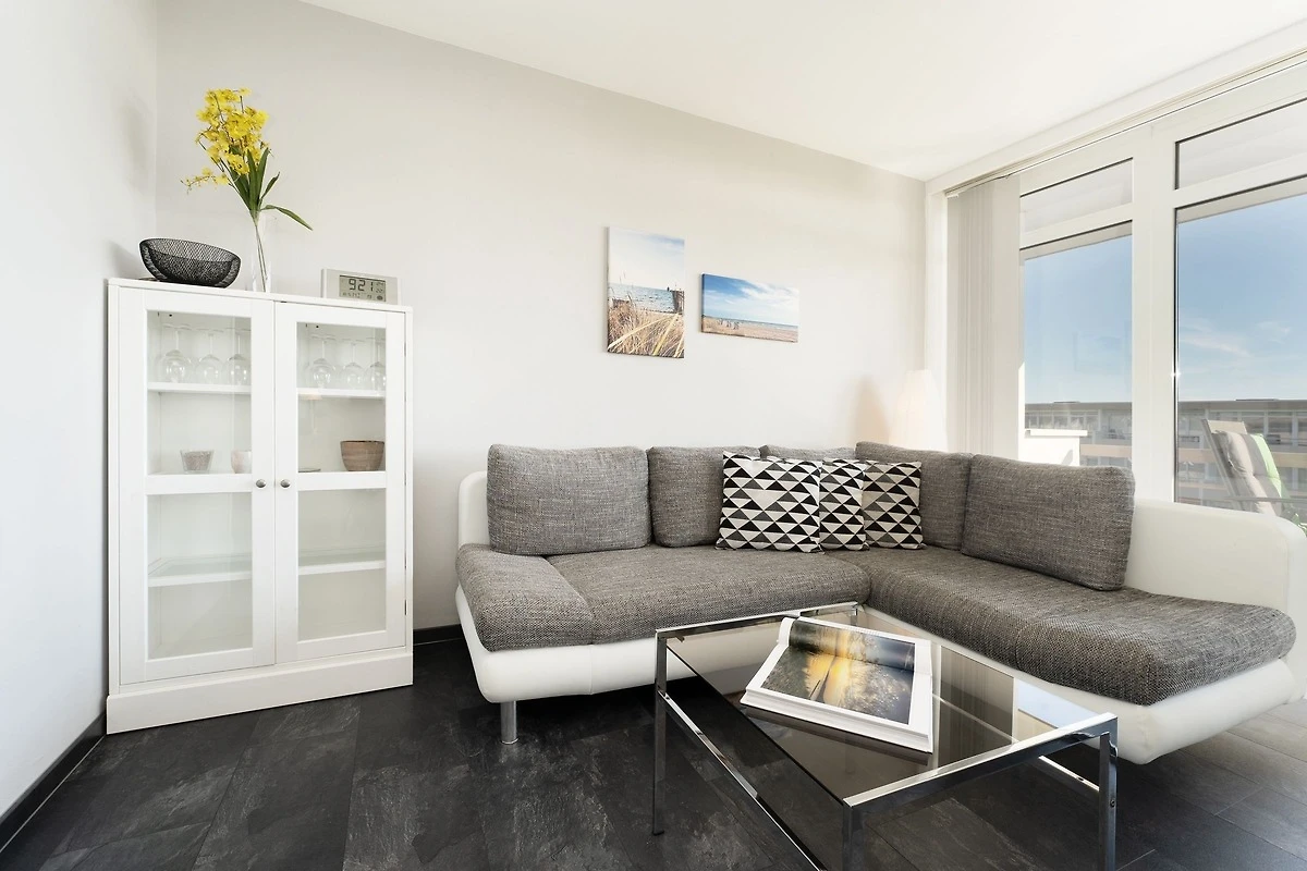 Für alles ist gesorgt! In der gut ausgestatteten, separaten Küche können Sie sich nach Herzenslust Ihre Lieblingsmahlzeiten zubereiten. Ein 4-Platten-Cerankochfeld, eine Mikrowelle, ein Kühlschrank, ein Backofen und eine Kaffeemaschine machen die Ausstattung perfekt. Das Wohn-/Schlafzimmer ist nicht nur funktional sondern auch gemütlich. Ein Schlafsofa und ein Schrankbett lassen sich mit wenigen Handgriffen in gemütliche Nachtlager umwandeln (je 1 Matratze 160x200 cm). Der Meerblick ist einfach atemberaubend! Alternativ bietet der Fernseher weitere Unterhaltung. Sie mögen es dunkel? Ziehen Sie dafür einfach die Vertikallamellen vor. Um morgens gut in den Tag zu starten, können Sie wahlweise mit dem Radio oder dem CD Player Ihrer Lieblingsmusik lauschen. Der ca. 5 m² grosse Balkon mit bequemer Möblierung lädt zum Verweilen ein.