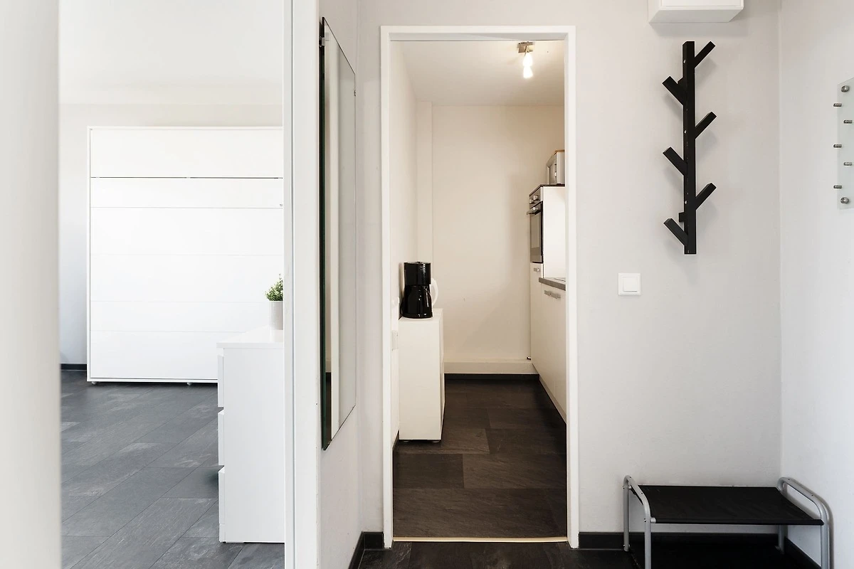 Guten Tag :-) Die Wohnung hat eine super Lage! Kleine Anmerkung: es könnte etwas an der Ausstattung verbessert werden: Halter/Ablage f. Duschzeug fehlen in der Dusche, kein Kleiderschrank vorh. - nur Kommoden und Ablägefächer, kein Tablett vorh. um Geschirr + Essen zum Tisch oder Balkon zu bringen.