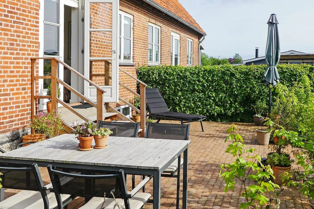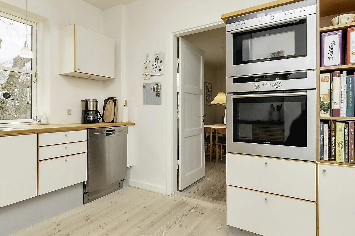 Küche(Kochherd(2 Kochplatten), Kaffeemaschine, Backofen, Mikrowelle, Spülmaschine, Kühlschrank), Wohn-/Schlafzimmer(TV(dänische Fernsehsender), Chromecast), Schlafzimmer(Einzelbett), Schlafzimmer(Doppelbett), Schlafzimmer(Einzelbett), Badezimmer(Waschbecken, Dusche, Toilette), Badezimmer(Trockner, Waschbecken, Dusche, Toilette, Waschmaschine), Garten, Gartenmöbel, Liegen