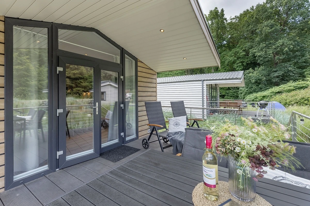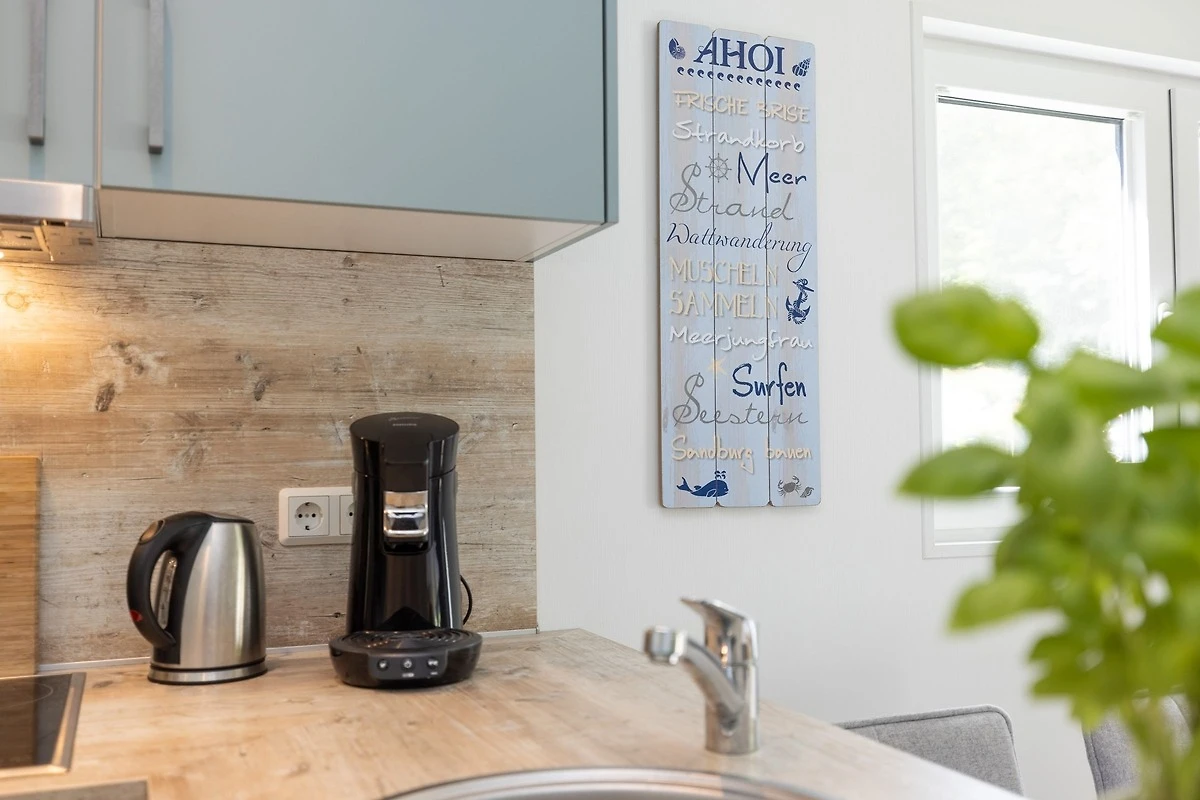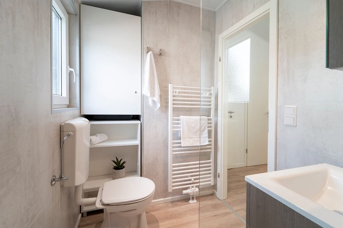 Im offenen Wohnbereich mit Essplatz und Küche trifft sich die Familie und findet hier viele Annehmlichkeiten, um die Urlaubstage komfortabel zu gestalten. Kuscheln Sie sich gemeinsam auf das gemütliche Sofa und verbringen Sie gesellige Stunden vor dem Fernseher oder geniessen Sie selbst zubereitete Köstlichkeiten am Esstisch. In der Küche finden Sie hierfür alles, was Sie zur Zubereitung Ihrer Speisen benötigen: Einen Herd mit 4 Kochfeldern, eine Mikrowelle (Kombigerät mit Backofenfunktion), eine Spülmaschine, Kaffeemaschine, Wasserkocher und Toaster. Vom lichtdurchfluteten Wohnbereich gelangen Sie auch auf die tolle möblierte Terrasse mit Blick in den angrenzenden Garten. Für gemeinsame Grillabende steht Ihnen ein Weber Kugelgrill zur Verfügung. Das Rauschen des Waldes sorgt am Abend für herrliche Entspannung, wenn Sie gemeinsam draussen sitzen. Als als Blick- und Windschutz wurde für Sie eine ausziehbare Seitenjalousie installiert. Zur Nachtruhe können Sie sich ins separate Schlafzimmer mit Doppelbett (2x 80x200 cm) und Kleiderschrank zurückziehen. 2 weitere Schlafplätze in Form von 2 Einzelbetten (je 80x200 cm) laden in einem weiteren Schlafzimmer mit Kleiderschrank zum Träumen ein. Auch das Tageslichtbad mit bodentiefer Dusche und Handtuchheizkörper lässt keine Wünsche offen. Der WLAN-Anschluss ist inklusive.