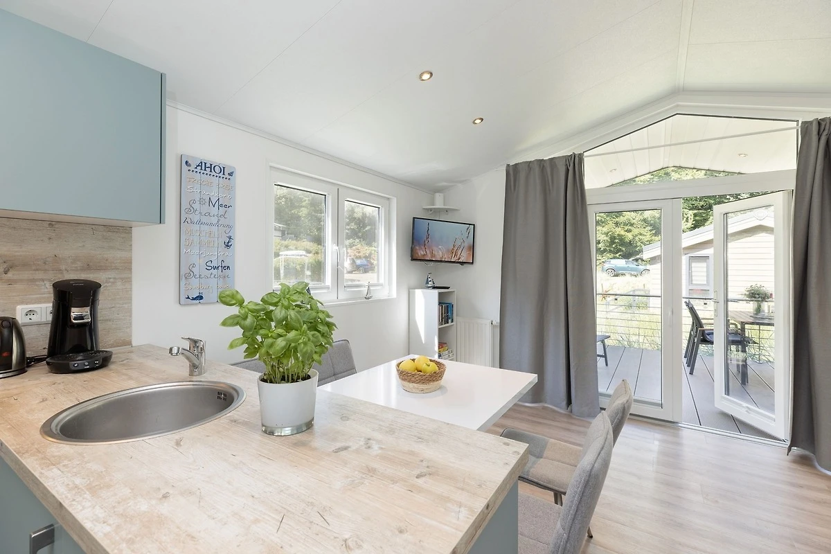 Dieses Ferien-Mobilheim wird Sie begeistern. Durch eine tolle Raumaufteilung finden auf ca. 40 m² Wohnfläche max. 3 Erwachsene und 1 Kind bequem Platz.