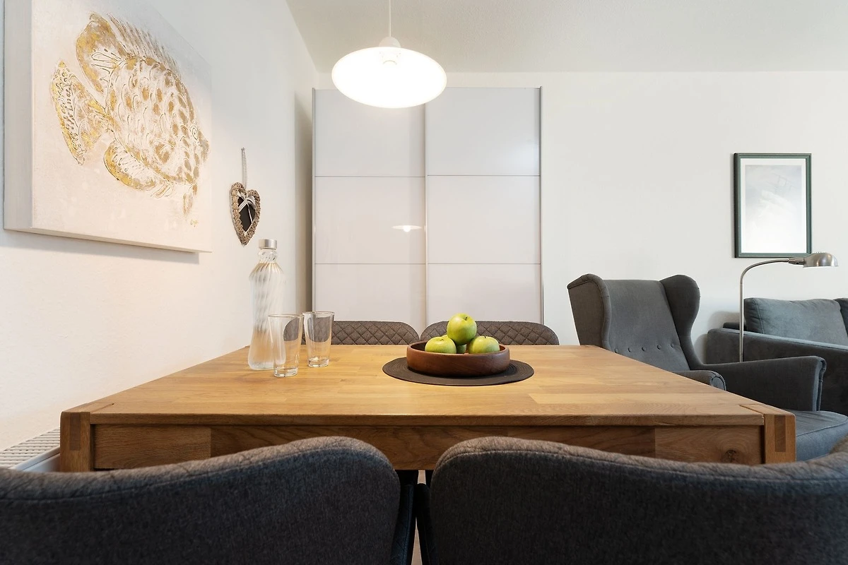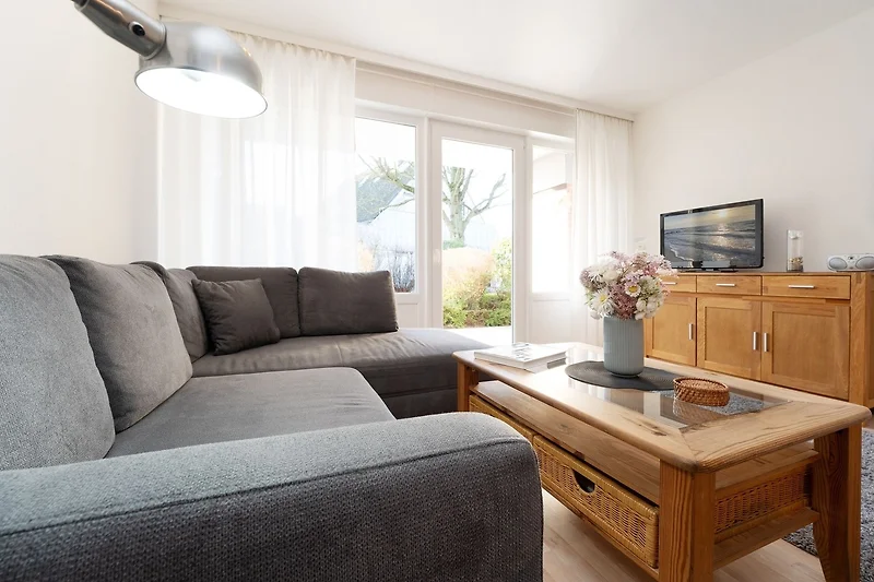 In dieser schönen 2-Zimmer-Erdgeschoss-Wohnung mit ca. 51 m² Wohnfläche für bis zu 2 Erwachsen und 1 Kind lässt sich der wohlverdiente Urlaub entspannt verbringen.