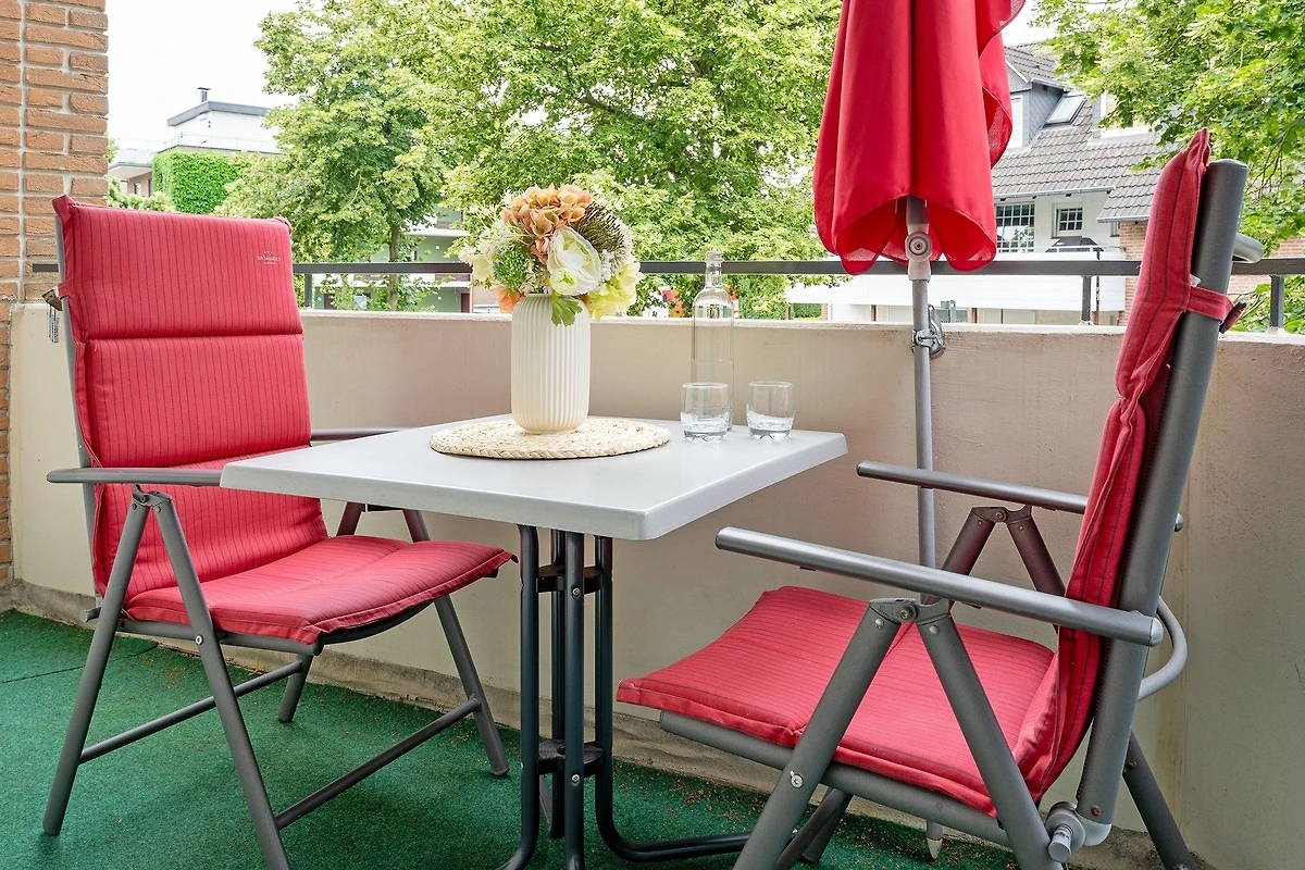 In bester Lage von Scharbeutz: strandnahe, ca. 49 m² grosse 2-Zimmer-Ferienwohnung im 1. OG mit Balkon für bis zu 2 Personen.
