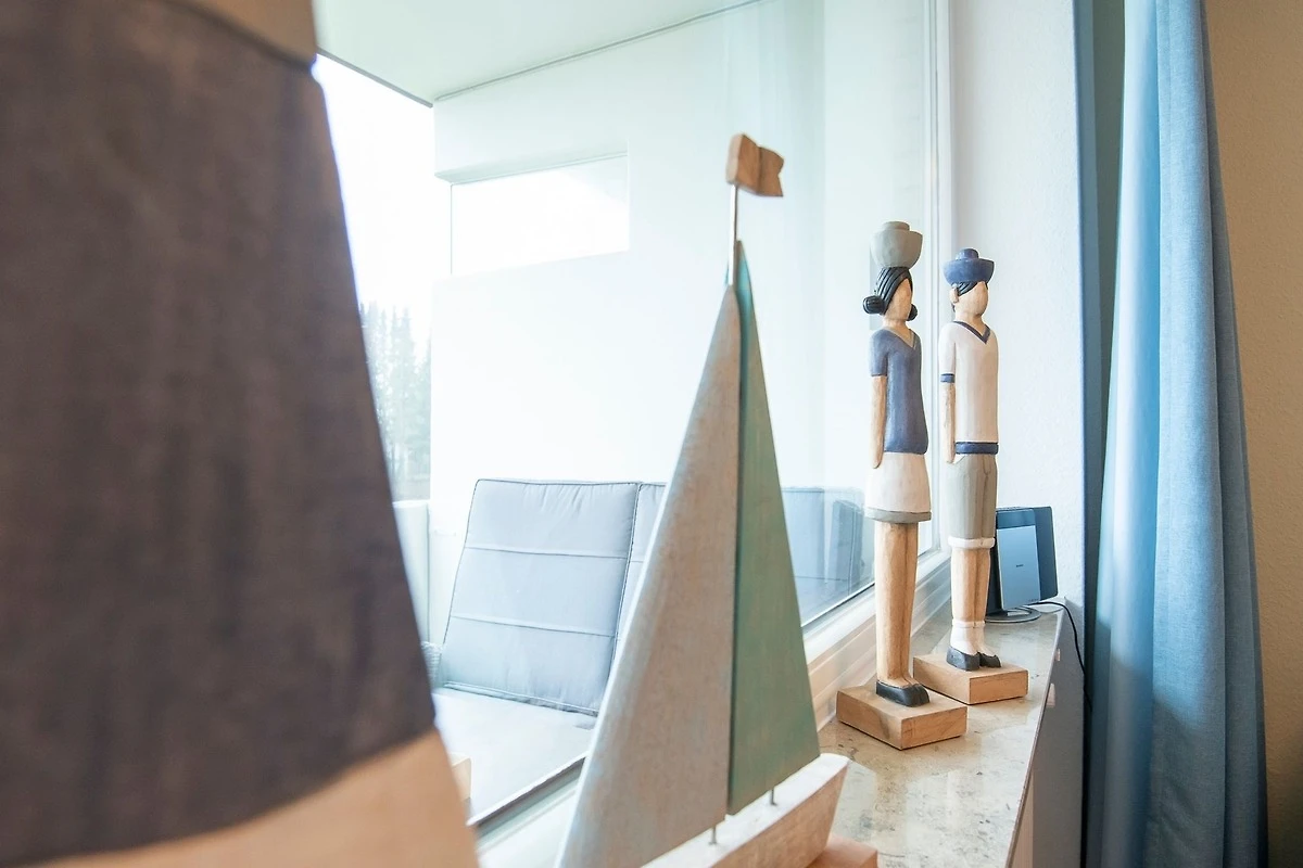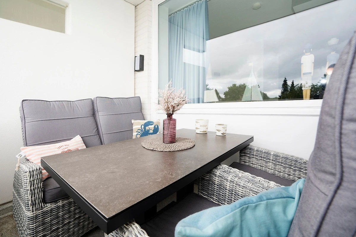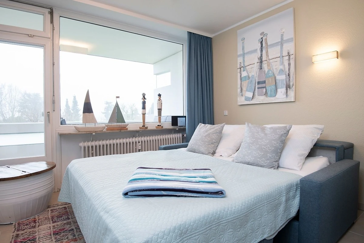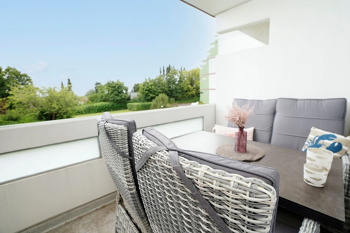 Durch ein geschicktes Einrichtungskonzept ist im offenen Wohn-, Schlaf- und Kochbereich alles komfortabel untergebracht. Tagsüber entspannen Sie auf dem bequemen Sofa, das Sie zur Nacht in eine gemütliche Schlafstätte (ca. 170x200 cm) für 2 Personen verwandeln können. Zusätzlich lädt ein grosses Doppelbett (180x200 cm) zum Träumen und Erholen ein. Für Unterhaltung sorgt ein TV-Gerät oder der CD-Player. Verwöhnen Sie sich kulinarisch in der top ausgestatteten Küche mit 4-Kochfeld-Ceranherd, Backofen, Kühlschrank, Spülmaschine, deLonghi Kaffeeautomat, KitchenAid, Waffeleisen, Toaster, Wasserkocher und Sandwichmaker. Auf dem möblierten Balkon mit seitlichem, saisonalen Ostsee-Fernblick können Sie die gute Ostseeluft geniessen. Bei Bedarf spendet ein Sonnenschirm Schatten. Ein Bad mit bodentiefer Dusche, Fön und beheizbarem Handtuchhalter komplettiert die Ausstattung dieser schönen Ferienwohnung.
