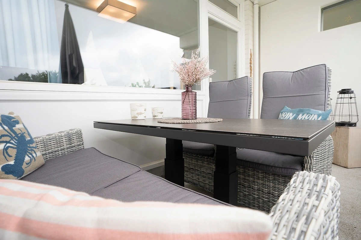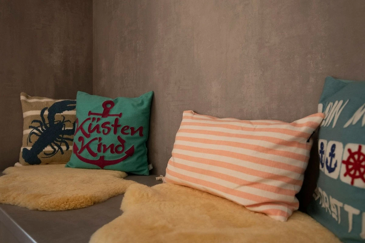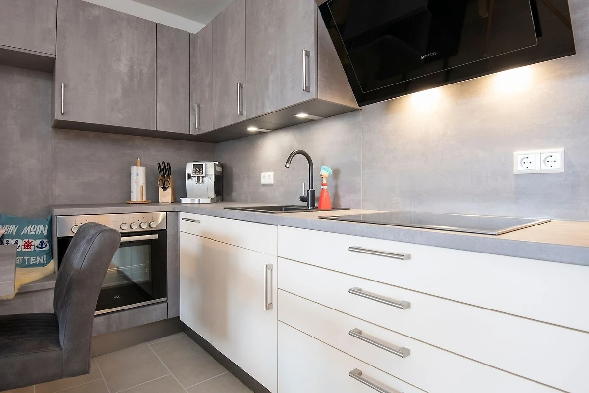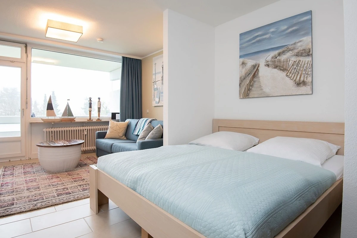 Durch ein geschicktes Einrichtungskonzept ist im offenen Wohn-, Schlaf- und Kochbereich alles komfortabel untergebracht. Tagsüber entspannen Sie auf dem bequemen Sofa, das Sie zur Nacht in eine gemütliche Schlafstätte (ca. 170x200 cm) für 2 Personen verwandeln können. Zusätzlich lädt ein grosses Doppelbett (180x200 cm) zum Träumen und Erholen ein. Für Unterhaltung sorgt ein TV-Gerät oder der CD-Player. Verwöhnen Sie sich kulinarisch in der top ausgestatteten Küche mit 4-Kochfeld-Ceranherd, Backofen, Kühlschrank, Spülmaschine, deLonghi Kaffeeautomat, KitchenAid, Waffeleisen, Toaster, Wasserkocher und Sandwichmaker. Auf dem möblierten Balkon mit seitlichem, saisonalen Ostsee-Fernblick können Sie die gute Ostseeluft geniessen. Bei Bedarf spendet ein Sonnenschirm Schatten. Ein Bad mit bodentiefer Dusche, Fön und beheizbarem Handtuchhalter komplettiert die Ausstattung dieser schönen Ferienwohnung.