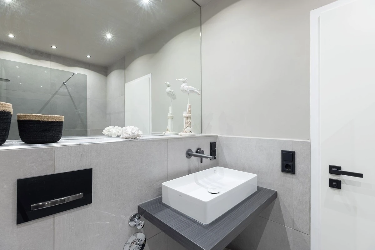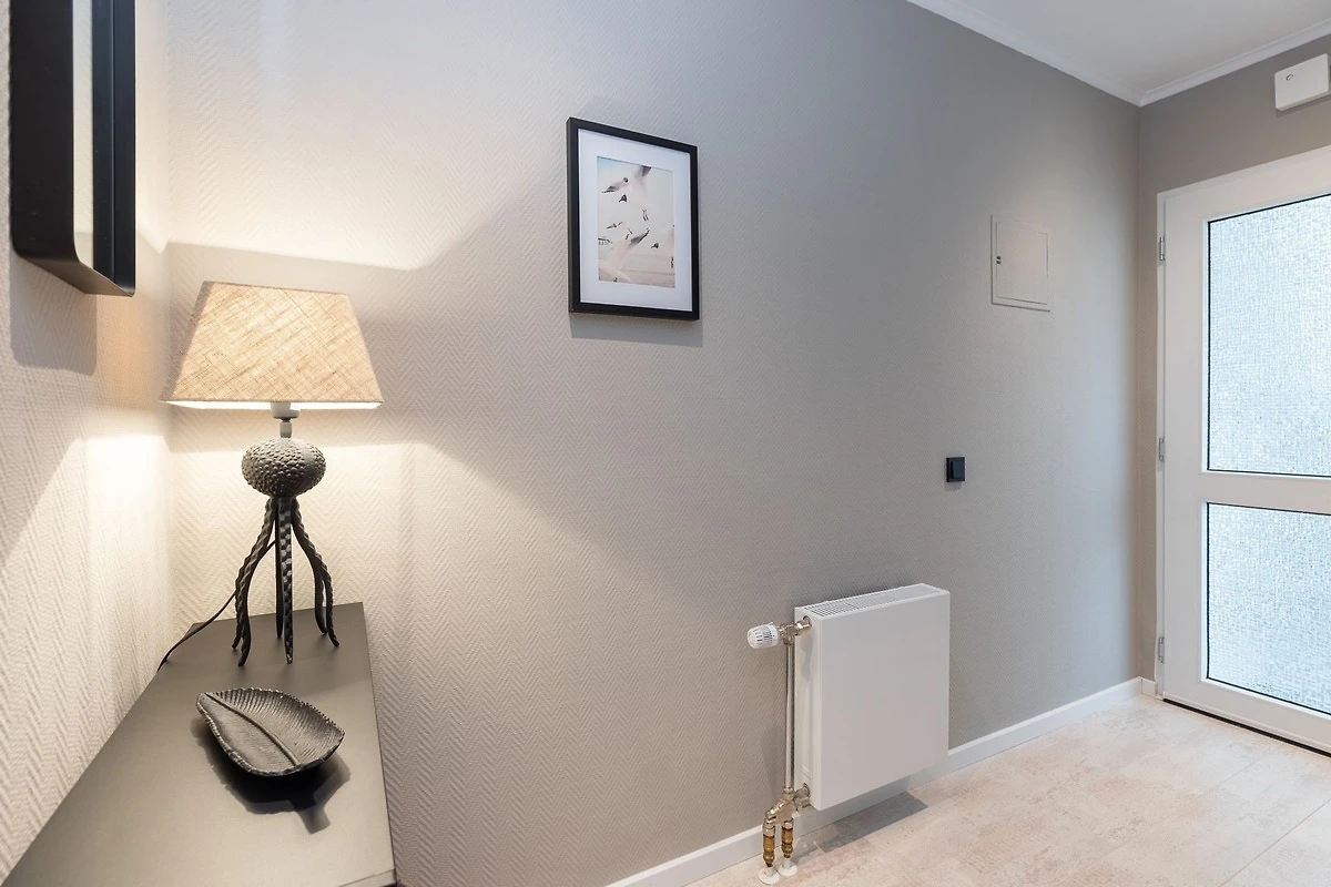 Durch einen kleinen Flur, in dem Sie Ihre Garderobe ablegen können, gelangen Sie ins Herzstück der Wohnung. Der grosszügige Wohn- und Essbereich kann mit gemütlicher Sofalandschaft zum Kuscheln punkten. Bei Bedarf kann diese in einen bequemen Schlafplatz umfunktioniert werden. Für Unterhaltung sorgt der Flachbild-TV, über den Sie Ihre Lieblingsmusik streamen können. Von hier aus haben Sie Zugang auf den möblierten Balkon, auf dem Sie bei einem guten Buch entspannen können. Die moderne Küche lässt keine Wünsche offen und Sie entscheiden selbst, ob Sie im Urlaub kochen, oder das breite gastronomische Angebot von Grömitz auskosten wollen. Im separaten Schlafzimmer erwartet Sie ein luxuriöses Boxspringbett (160x200 cm) und lädt zu erholsamen Nächten ein. Nach einer erfrischenden Dusche im hochwertigen Duschbad können Sie beschwingt und erfrischt in den Tag starten. Der WLAN-Anschluss ist für Sie inklusive.