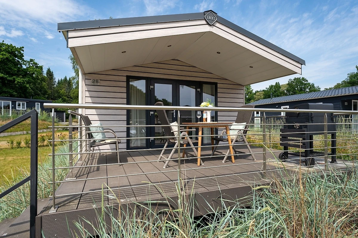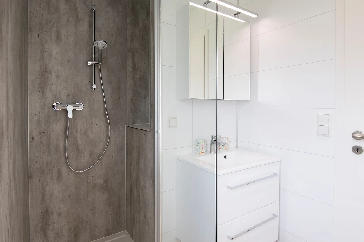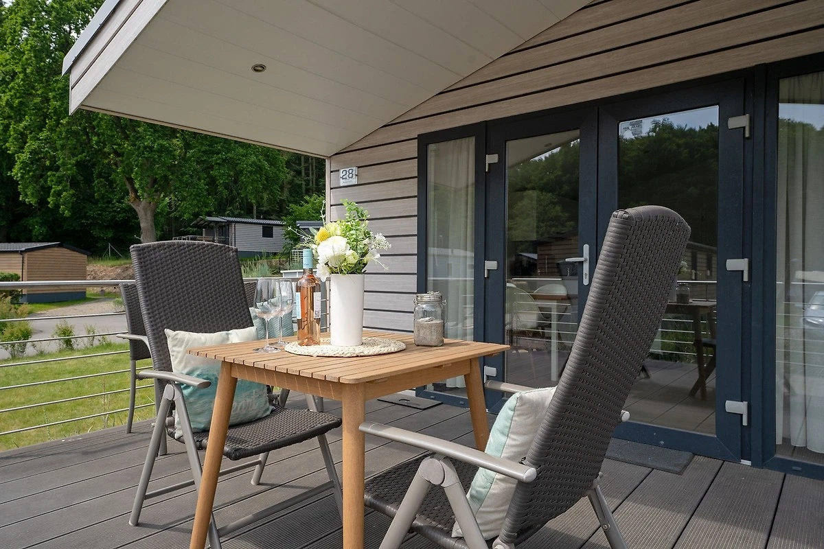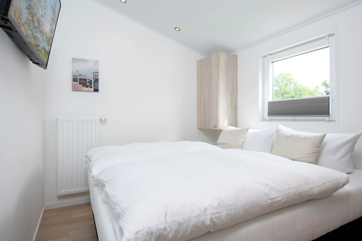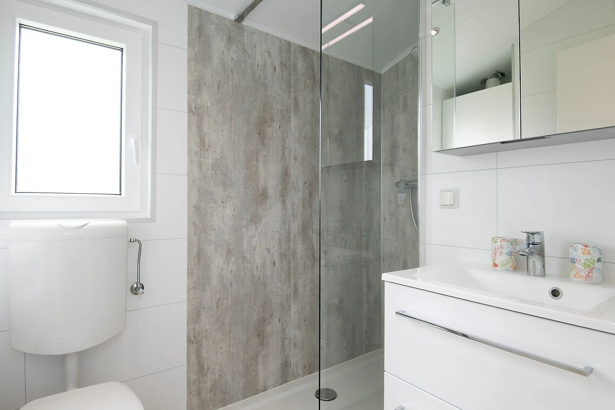 Die gesamte Raumaufteilung ist bis ins kleinste Detail durchdacht. Der kombinierte Wohn- und Essbereich verfügt über ein bequemes Sofa und über einen Esstisch, der ausreichend Platz für bis zu 4 Personen bietet. Die zum Wohnbereich offene Küche mit hellen Fronten lädt zu gemeinsamen Kochabenden mit der Familie oder Freunden ein. In der Küche sind alle Notwendigkeiten wie z. B. ein Kühlschrank, eine Mikrowelle (Kombigerät mit Backofenfunktion) und auch ein Geschirrspüler vorhanden. Eine Kaffee-Kapselmaschine (Nespresso) sorgt für den täglichen Kaffeegenuss morgens beim Frühstück oder nachmittags zum Kuchen. Ein Schlafzimmer empfängt Sie mit einem komfortablen Doppelbett (2x 80x200 cm), einem Kleiderschrank und einem Fernseher. Im anderen Schlafzimmer befinden sich zwei getrennt stehende Einzelbetten (je 80x200 cm) und ein Kleiderschrank. Die Fenster in beiden Schlafzimmern lassen sich mit Plissees angenehm verdunkeln. Im kleinen, hell gefliesten Badezimmer mit Fenster sind eine Dusche und Ablagemöglichkeiten für Ihre Badutensilien vorhanden. Ein beheizbarer Handtuchhalter sorgt für zusätzlichen Komfort. Ein Highlight dieser Ferienunterkunft ist die möblierte, überdachte Terrasse mit Grill, auf der Sie Ihren Urlaub in vollen Zügen geniessen können. Der WLAN-Anschluss ist für Sie selbstverständlich inklusive.