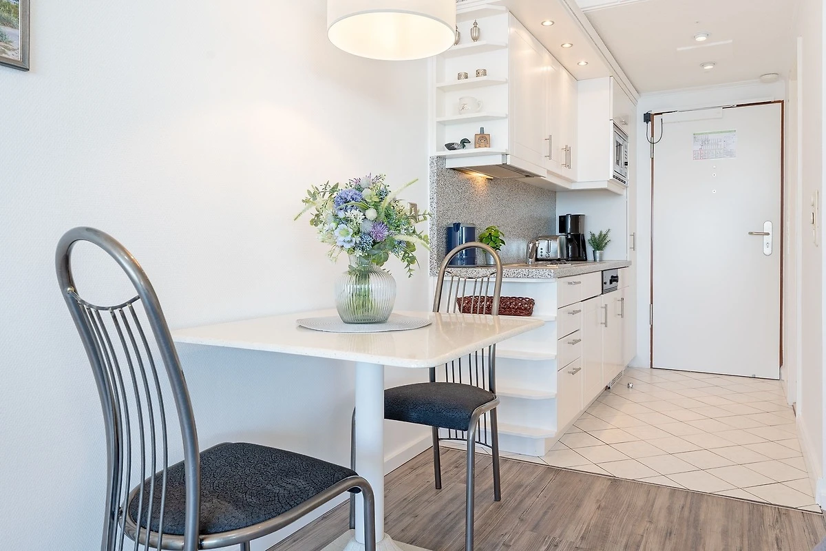 In frischem, klarem Design begrüsst Sie diese 1-Zimmer-Ferienwohnung im 7 Obergeschoss eines Appartementhauses in Timmendorfer Strand. Auf ca. 35 m² Wohnfläche können sich bis zu 2 Personen erholen und dem Alltag entfliehen. Der Fahrstuhl bringt Sie bequem in Ihre Etage.