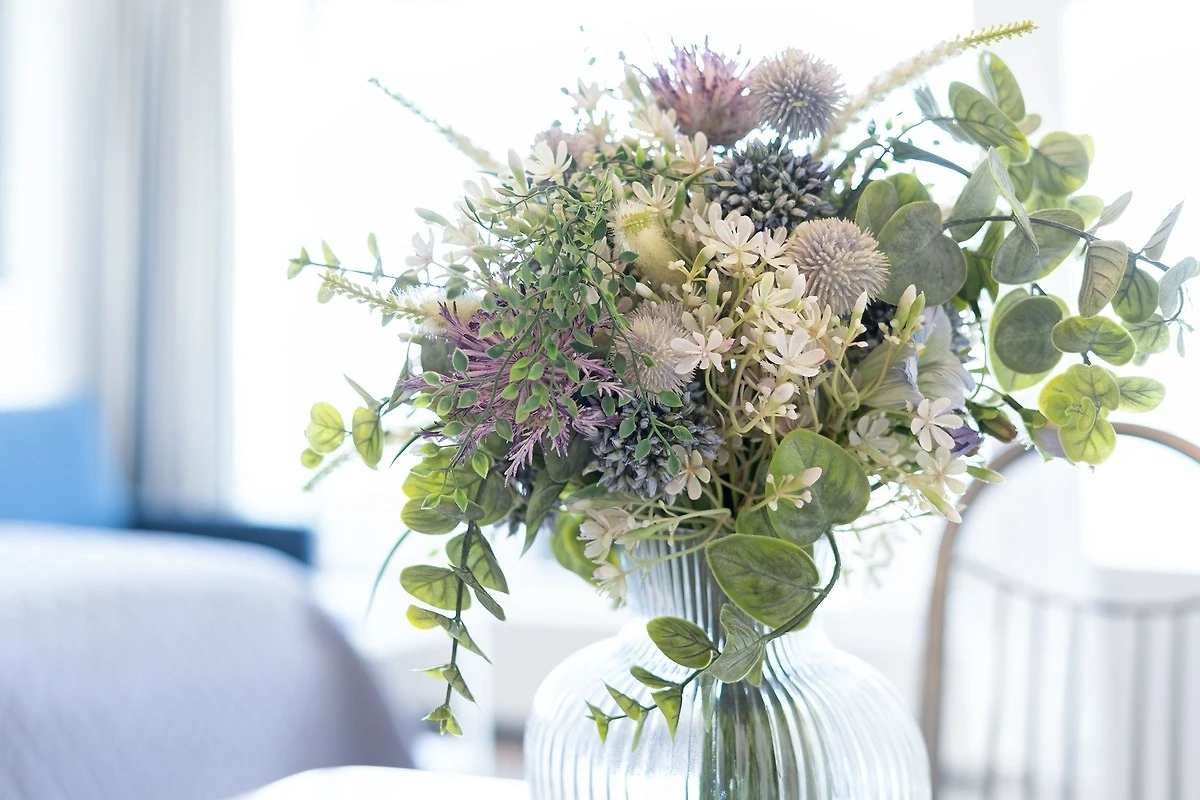 Die Ausstattung der Wohnung ist ziemlich veraltet und nicht zeitgemäß. Die verstauben Plastikblümen machen es leider nicht besser.