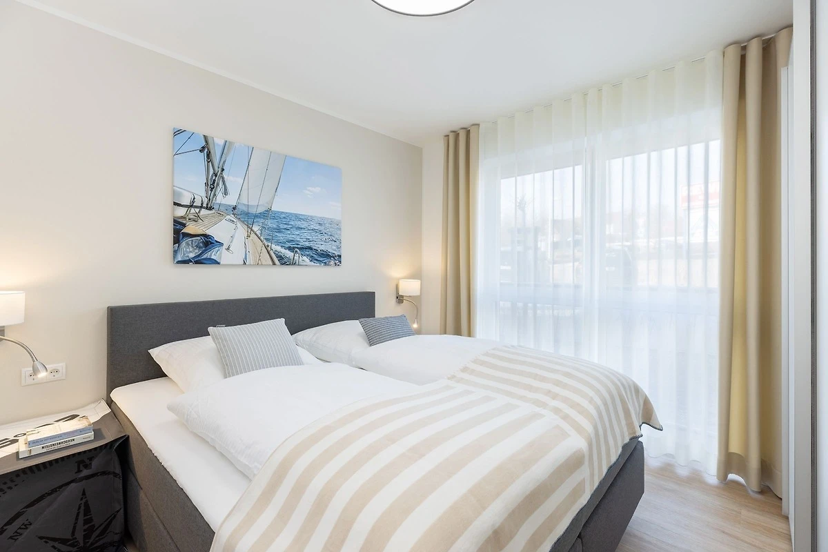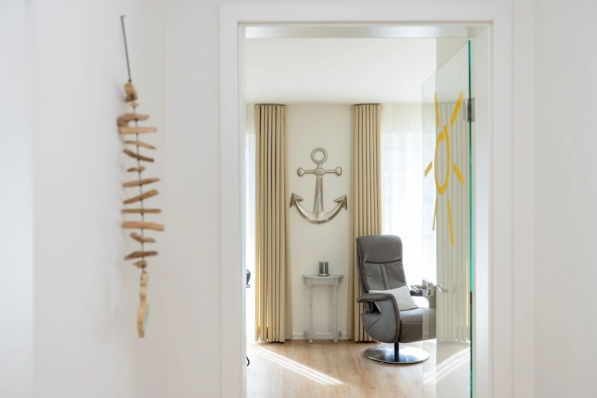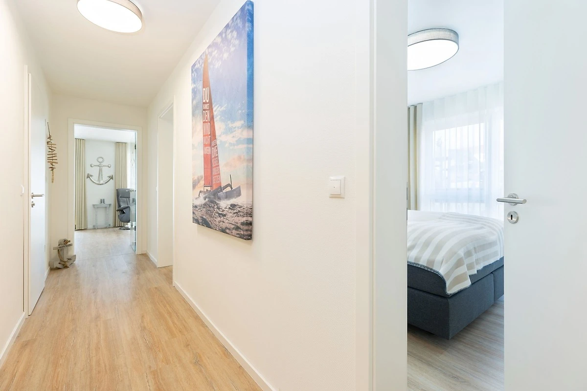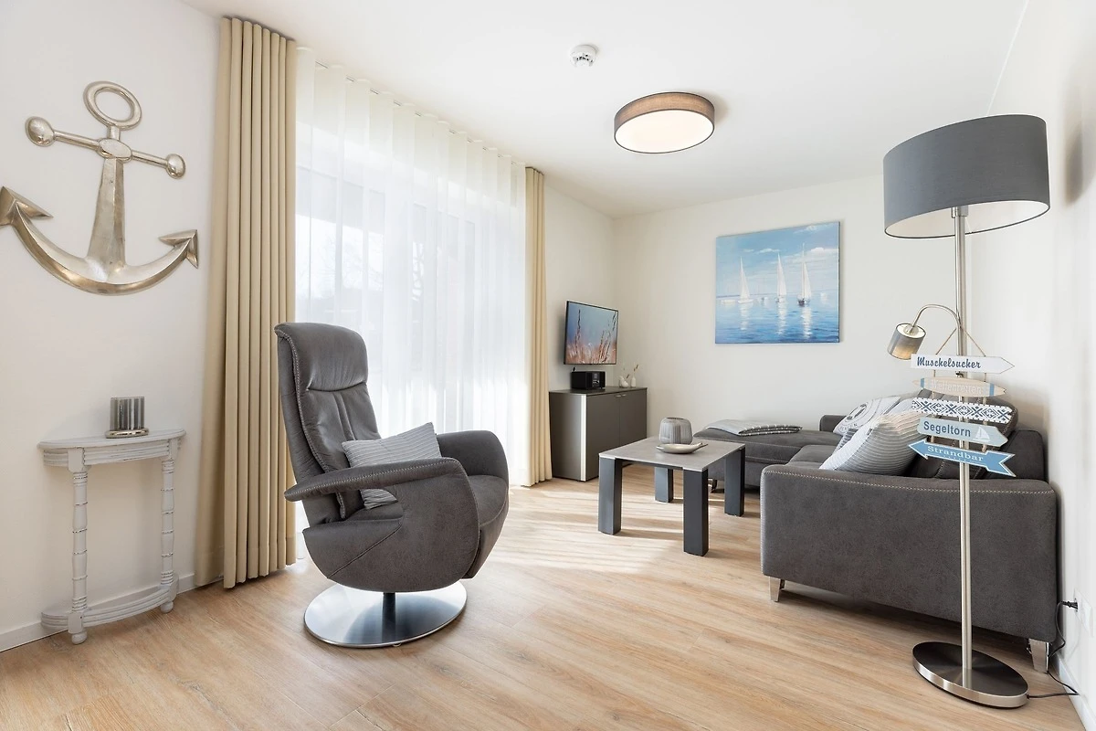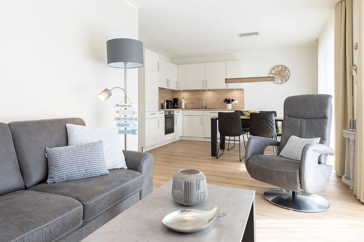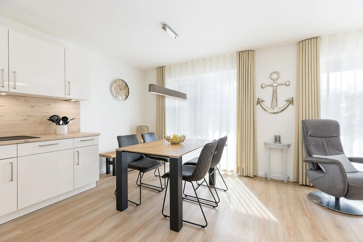 Bis zu 4 Personen können sich in dieser modernen 3-Zimmer-Ferienwohnung mit eigener Sauna und Süd-Terrasse auf ca. 74 m² Wohnfläche erholen. Die Wohnung befindet sich im Erdgeschoss in zentraler Lage von Grömitz.