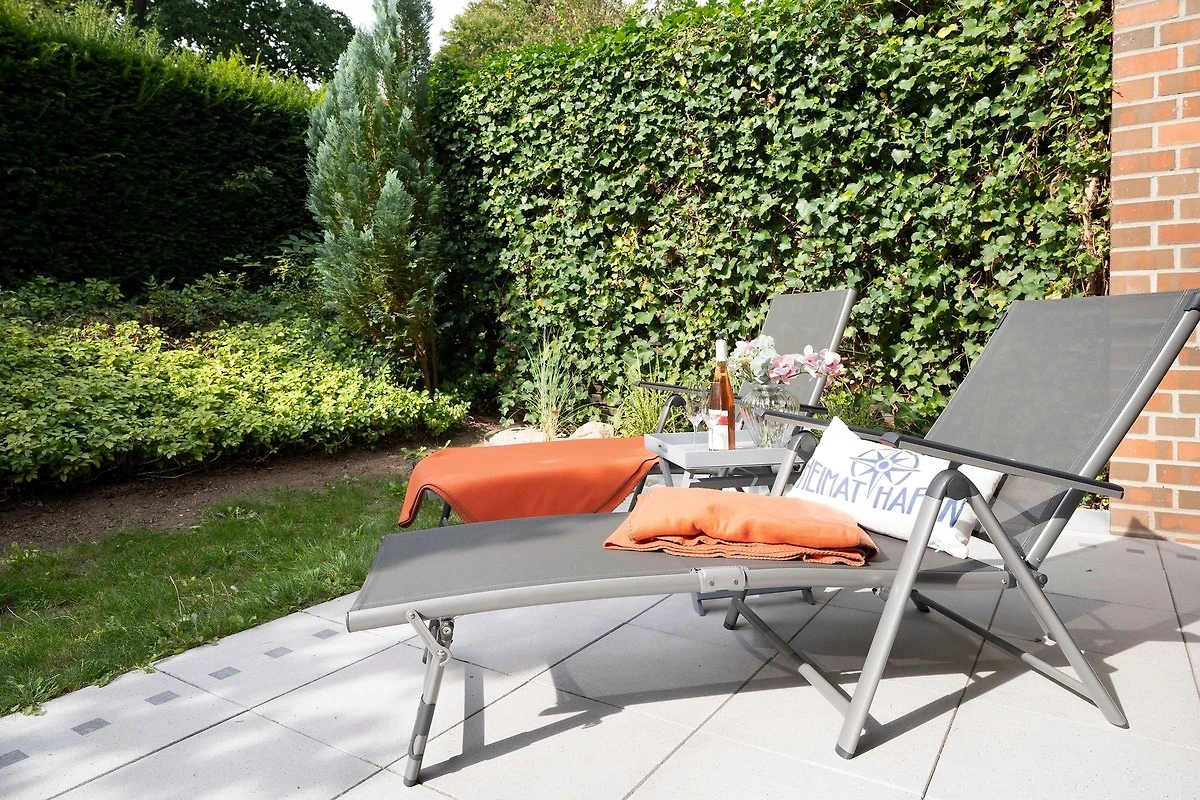 Die Terrasse ist schön angelegt. Auch der direkte Zugang zur Terrasse von draußen hat uns gefallen. in dem Bett haben wir vom ersten Tag an sehr gut geschlafen.