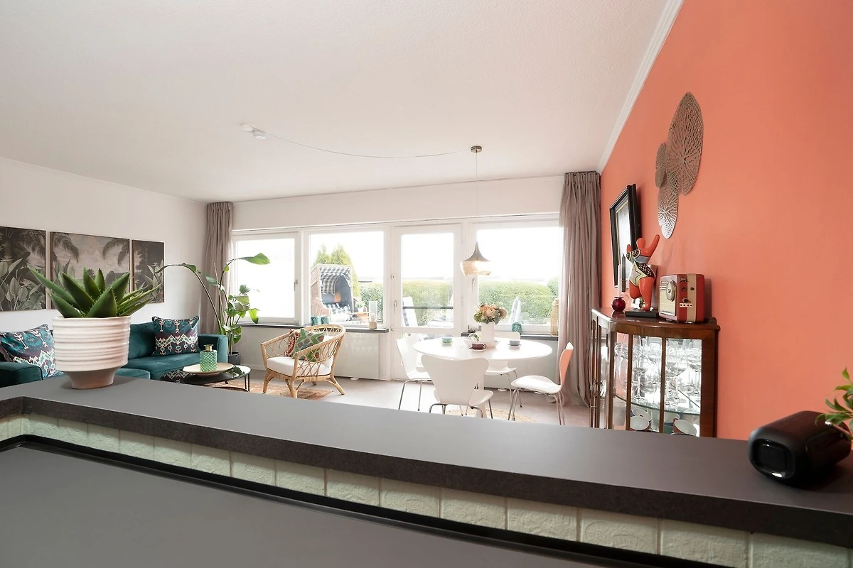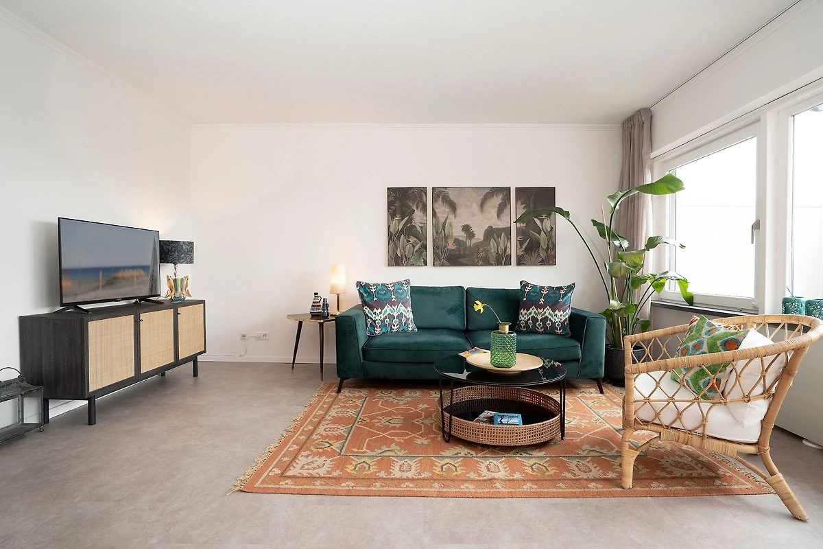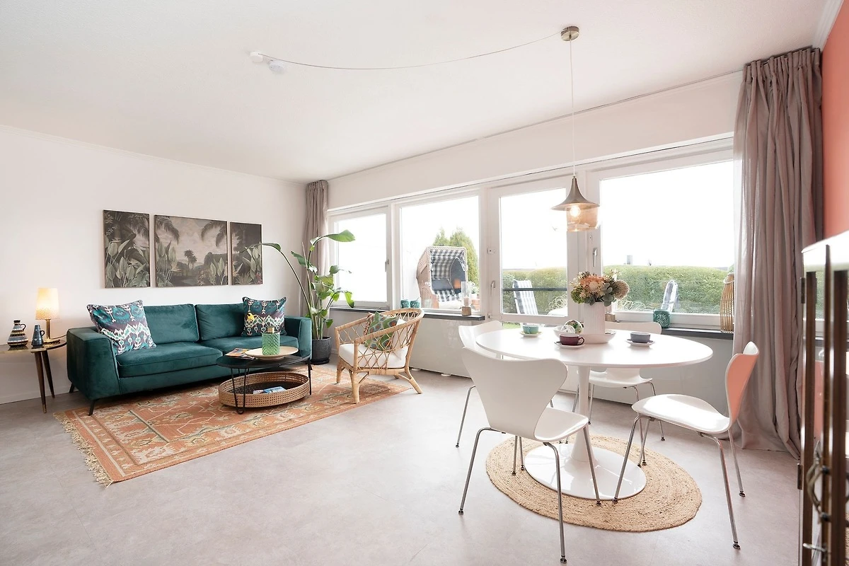 Das im Erdgeschoss gelegene Urlaubsdomizil empfängt Sie mit einem praktischen Flur, der Sie direkt in den modern gestalteten Wohnbereich leitet. Hier fügen sich ausgefallene Einzelstücke nahtlos in die modische Einrichtung ein und sorgen für ein Rundum-Wohlgefühl. Die zum Wohnbereich hin offene Küche verfügt über alle wichtigen Geräte. Nur einen Schritt braucht es, dann gelangen Sie vom Wohnzimmer auf die Sonnenterrasse mit eigenem Strandkorb. Die Ruhe in der Nacht finden Sie in einem der beiden Schlafzimmer mit Doppelbett (2x 80x200cm) und einem ausziehbaren Kojenbett (je 80x200cm). Das Meersalz von der nur 350m entfernten Ostsee waschen Sie sich ganz bequem in der offenen Dusche im Badezimmer ab und hüllen sich danach in ein Handtuch vom beheizbaren Handttuchhalter.
