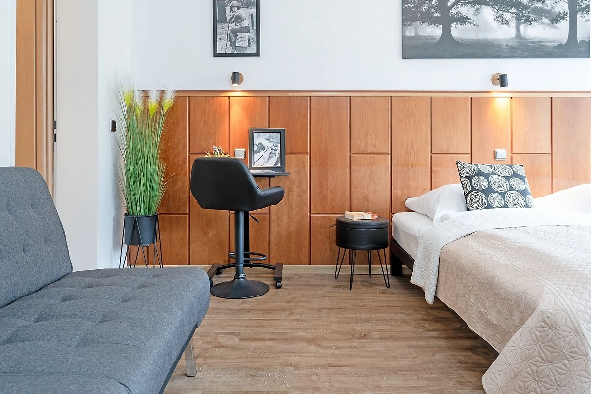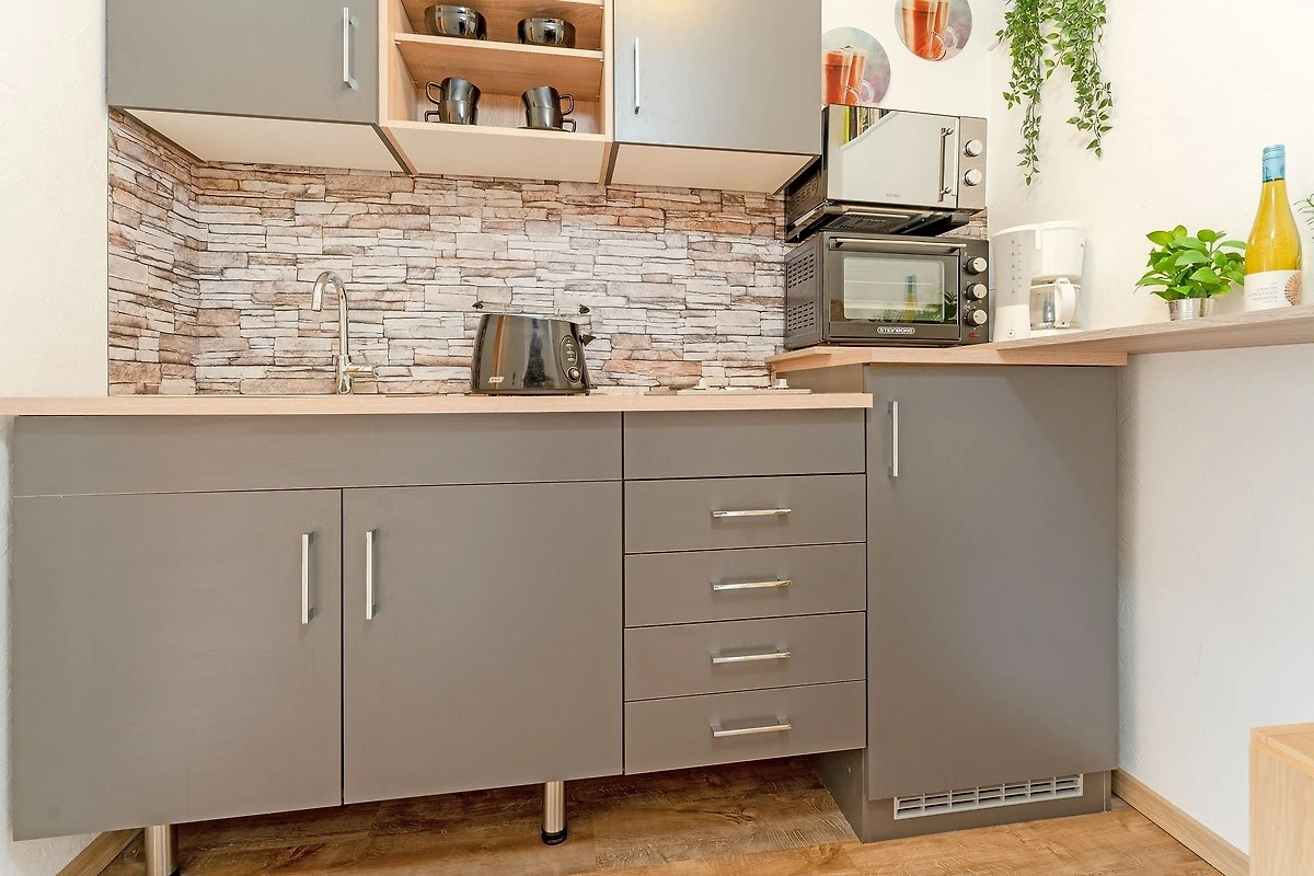 Der Wohn/Schlafbereich ist mit einem gemütlichen Doppelbett (2x 90x200 cm), einem Sofa sowie einem kleinen Laptop-Schreibtisch ausgestattet. In der gut ausgestatteten Küchenzeile geht das Kochen ganz wie von selbst, anschliessend können Sie die zubereiteten Mahlzeiten am Essplatz gemeinsam einnehmen. Nach einem erlebnisreichen Urlaubstag entspannt es sich herrlich in der Badewanne im tageslichthellen Badezimmer. Für Unterhaltung sorgen der vorhandene WLAN-Anschluss sowie ein Flachbild-TV.