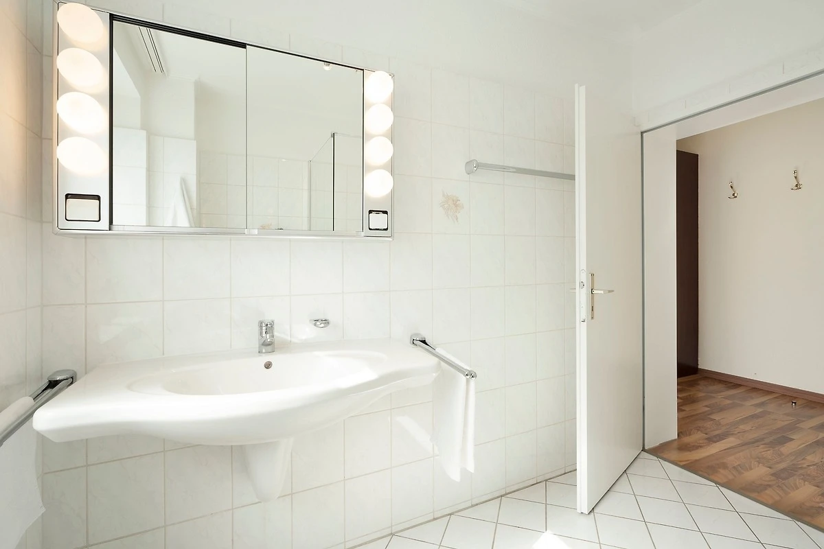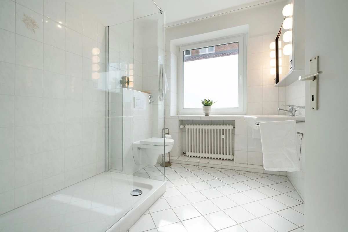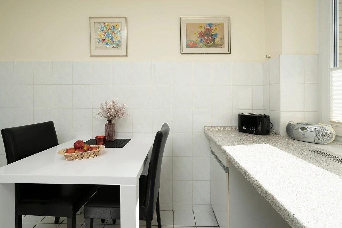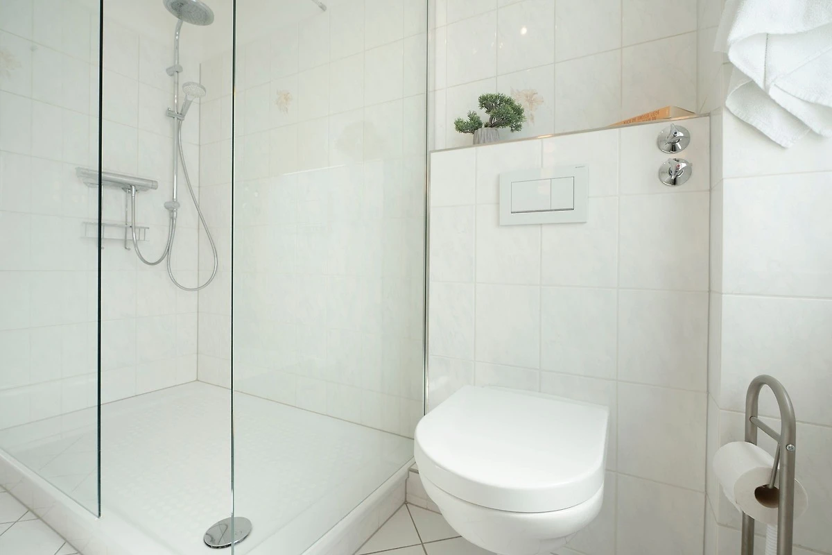 Wie wäre es morgens mit einem kleinen Strandspaziergang? Das kleine, feine Apartment befindet sich in der Wohnanlage Haus Seepferdchen am Meer – und liegt direkt am Meer. Der Ostseestrand ist nur rund 10 Meter entfernt. Aber kommen Sie erst einmal herein: Die Aufteilung der Wohnung ist raffiniert und punktet durch eine zeitlose Einrichtung. Wenn Sie direkt durch den Flur gehen, kommen Sie in den hellen Wohn-/Schlafbereich. Hier stehen 2 gemütliche Sessel, ein kleiner Tisch sowie ein TV-Gerät für Sie bereit. Geniessen Sie hier nach einem schönen Strandtag Ihre Auszeit. Direkt hinter der Sitzecke befindet sich ein grosses Boxspringbett (200x200 cm), das Ihnen sicher eine wunderbare Nachtruhe beschert. Für ein Babybett ist in dem Wohn-/Schlafraum genügend Platz vorhanden. Den Kleiderschrank finden Sie im Flur. Die separate Küche mit Spülmaschine ist gut ausgestattet und wird jeden Hobby-Koch beim Zubereiten seiner Lieblingsspeisen erfreuen. Das helle Duschbad hat ein Fenster und verspricht einen guten Start in den Tag.