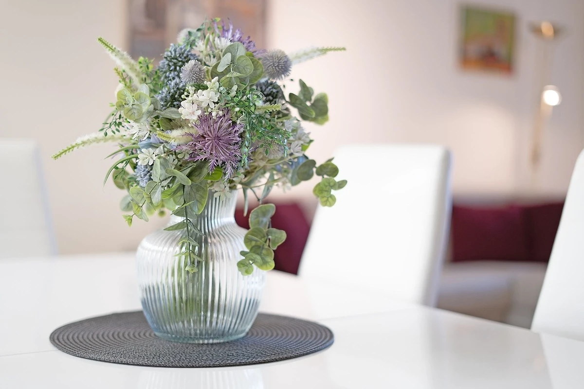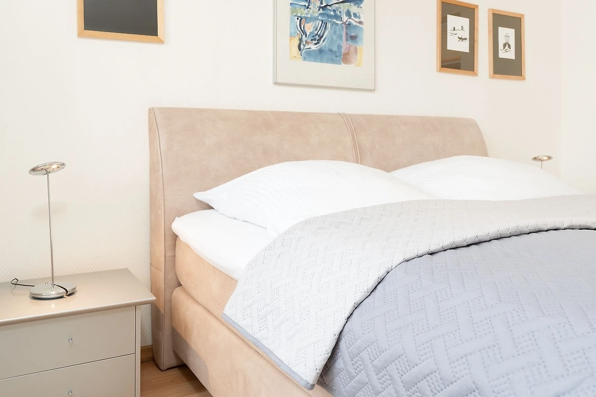 Stellen Sie sich vor, Sie können von Ihrem Wohnzimmer aus die Ostsee sehen ... in dieser gemütlichen Wohnung in der Wohnanlage Haus Eva Mar am Meer ist dies möglich. Das Besondere: der Strand dazu ist auch nur rund 20 Meter entfernt. Das grosszügige Ferienobjekt bietet Ihnen viel Platz zum Erholen. Angefangen mit dem Wohnzimmer: Die gleich zwei kuschelige Polster-Garnituren laden zum netten Beisammensein ein. Führen Sie hier interessante Gespräche oder lassen Sie sich vom TV-Gerät unterhalten. Auch in der Ess-Ecke können Sie angenehm zusammensitzen. Bei schönem Wetter können Sie entspannt auf der grosszügigen Terrasse mit direktem Zugang auf den davor liegenden Gemeinschaftsgarten verweilen. Im Wohnzimmer haben Sie genügend Platz, um ein Kinderreisebett unterzubringen. Die beiden weiteren Schlafzimmer verfügen jeweils über ein Boxspringbett (180x200 cm) und auch hier besteht jeweils die Möglichkeit, ein Kinderreisebett aufzustellen. Ein Schlafzimmer davon ist übrigens ein Durchgangszimmer. Die separate, geräumige Küche ist gut ausgestattet. Bereiten Sie hier nach Herzenslust Ihre Lieblingsmahlzeiten zu oder probieren Sie neue Rezepte aus. Eine Spülmaschine erledigt im Anschluss den Abwasch. Das Duschbad mit Fenster und Handtuchwärmer bringt Sie gut in den neuen Urlaubstag.
