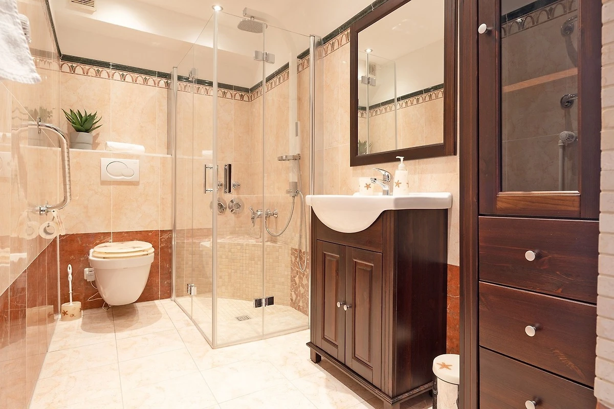 Die Lage hervorragend, aufstehen und auf die Ostsee blicken, einfach wunderbar. Die Wohnung maritim eingerichtet und alles da was man braucht. Das einzige was es zu bemängeln gibt, sind die Betten, Metallgestell und die durchgelegenen Matratzen. Die Dusche nicht für korpulente Menschen geeignet.