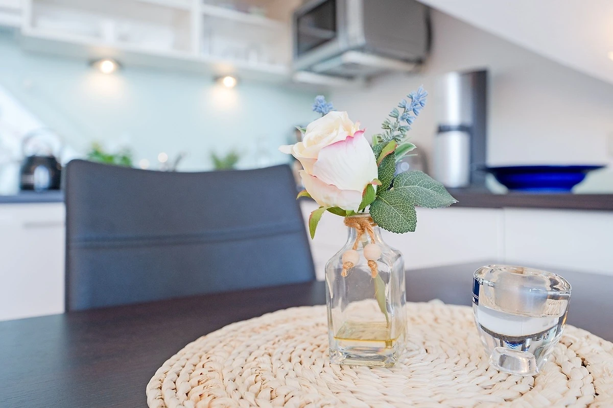 Ihre Ferienwohnung befindet sich im 3. OG der Anlage Strandburg, unmittelbar an der Scharbeutzer Strandpromenade. Über einen kleine Flur gelangen Sie in den offenen Wohn- und Essbereich. Die Küchenzeile ist in den Wohnbereich integriert und hält alle Annehmlichkeiten wie eine Mikro-Back-Kombi, ein 2-Platten-Cerankochfeld und Co. bereit, um nach einem Strandtag die wohlverdiente Mahlzeit zuzubereiten. Die zwei bequemen Relaxsessel sind nicht weit entfernt - von hier aus, oder auch vom lauschigen Ost-Balkon, kann nach dem Essen den Blick über die tiefblaue Ostsee schweifen lassen. Für musikalische Untermalung sorgt ein Bose-Radio. Das Schlafzimmer besticht mit einem bequemen Boxspringbett (160 x 200cm), einem Kleiderschrank und der Möglichkeit, das Zimmer bei Nacht angenehm mithilfe von Plissees abzudunkeln. Der nächste Ostseetag kann im Duschbad mit beheizbarem Handtuchhalter entspannt losgehen.