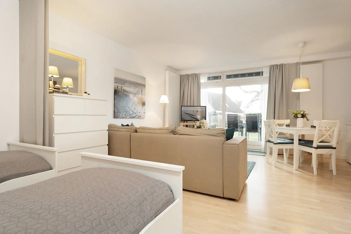 In bester Lage von Grömitz erwartet Sie diese charmante 1-Zimmer-Ferienwohnung im Erdgeschoss mit grosszügiger Terrasse und einer Wohnfläche von ca. 42 m² für bis zu 2 Personen.