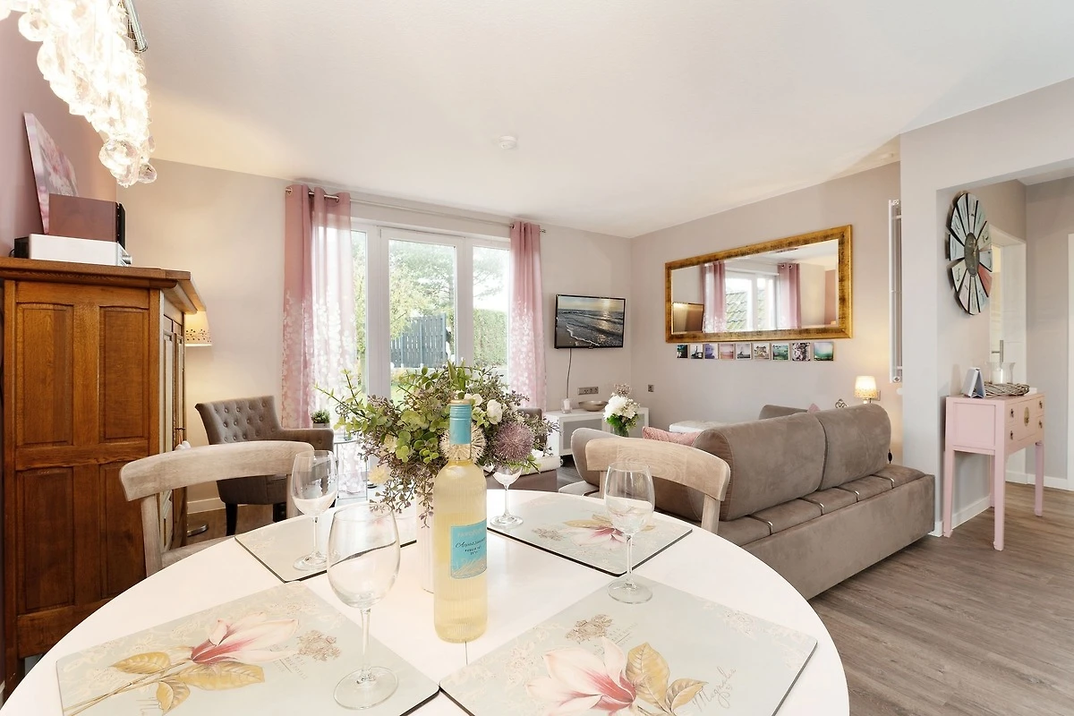 Grosszügige 2-Zimmer-Ferienwohnung im schönen Rettin im Erdgeschoss mit Terrasse, Garten und einer Wohnfläche von ca. 78 m² für bis zu 2 Erwachsene.