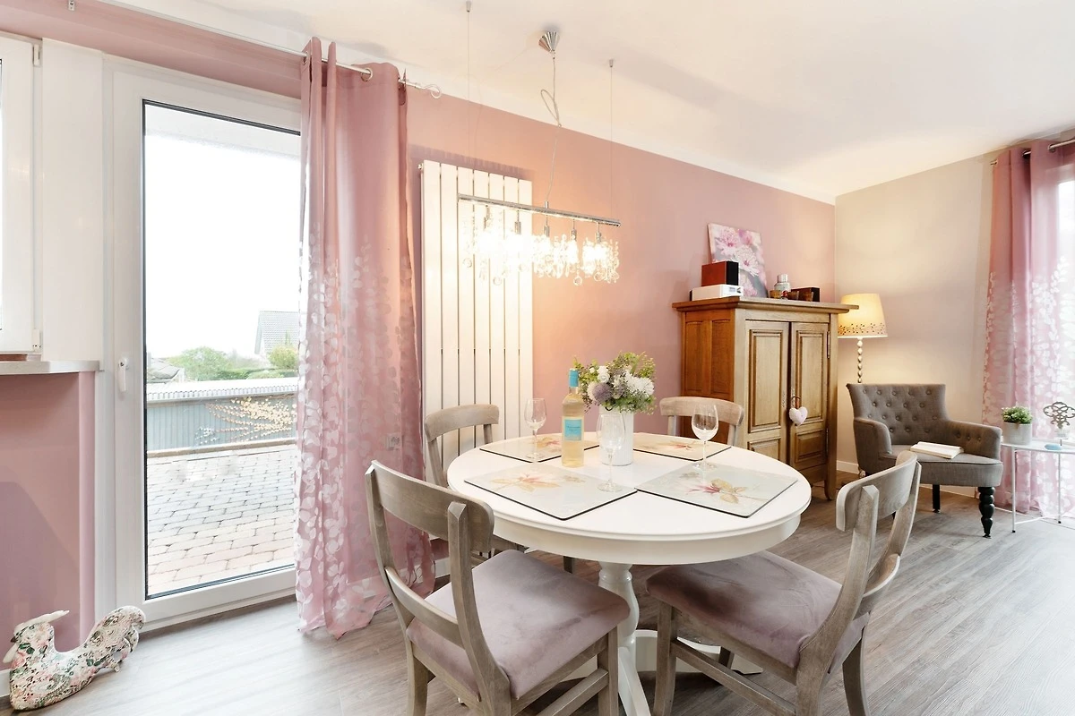 Eine ideale Ferienwohnung für Paare mit Hund. Der große Garten, die große Terrasse mit Mobiliar und auch die geräumige Wohnung sowie ihre Einrichtung nebst Deko haben uns sehr gefallen. In der Küche fehlt es an nichts und sowohl TV, DVD-Player mit DVD's, Spiele, Bücher etc. war alles vorhanden. Es gab sogar eine eigene Waschmaschine in der Küche. Leider roch der Hausflur etwas moderig, aber das ist Meckern auf hohem Niveau. Wir können diese Ferienwohnung auf jeden Fall weiterempfehlen.