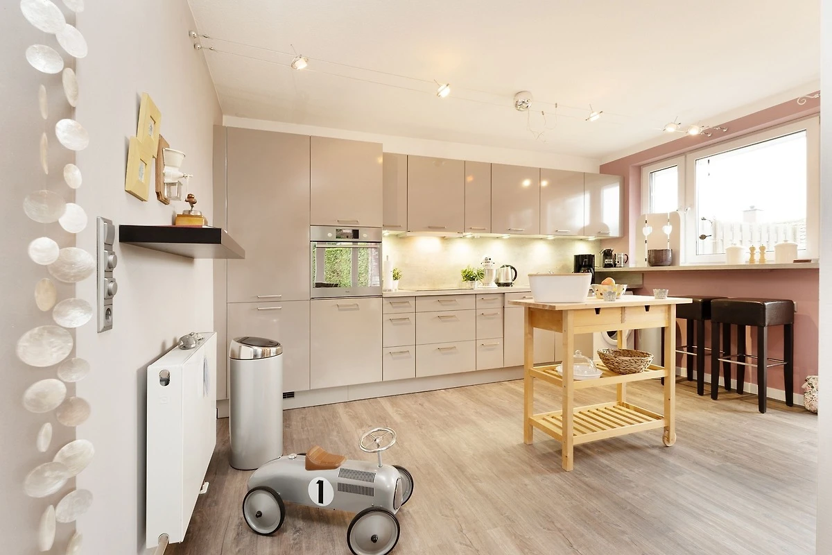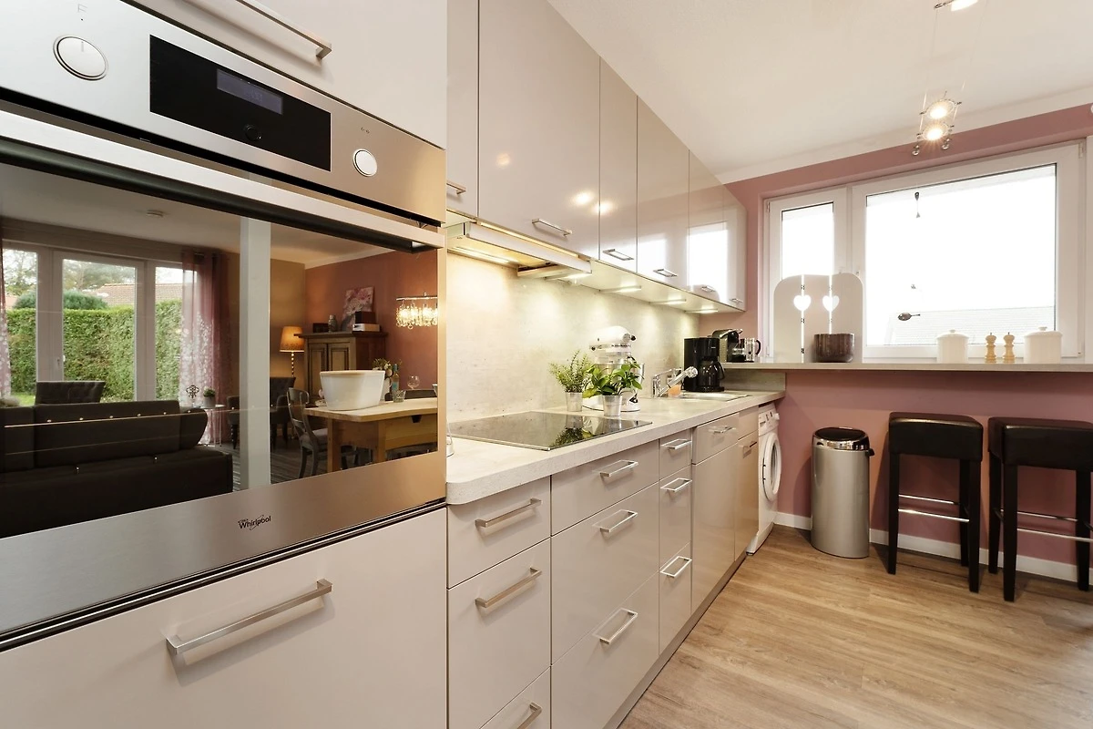 Alle Zimmer sehr geräumig - sehr viel Stauraum +Regal-/Schrankplatz, 3m Kleiderschrank ! Steckdosen überall, Geschirr elegant + alles da, Gläser reichlich ! Küche komplett ausgestattet: Töpfe, Siebe, Küchenhelfer usw. Stellplatz 10m vom Eingang Terr.+Garten hinterm WZ 12Min zu Fuß zum Strand