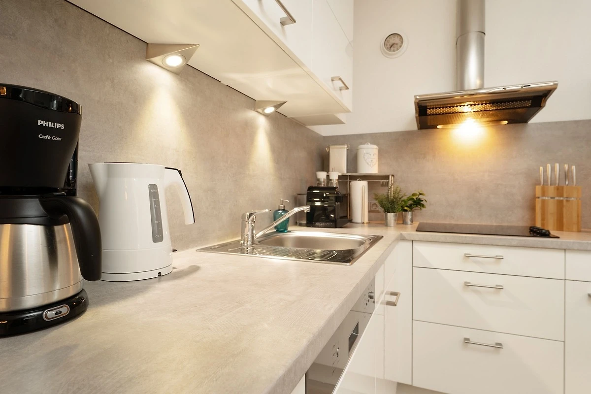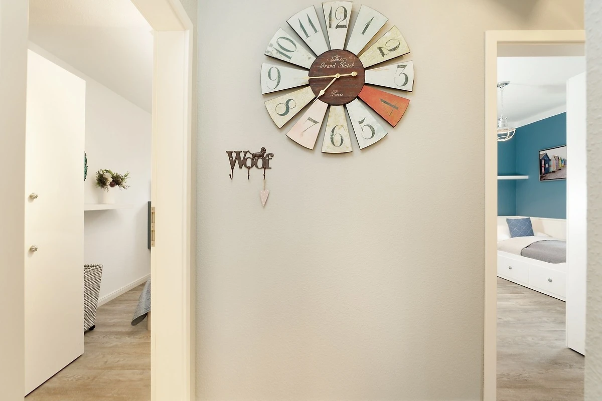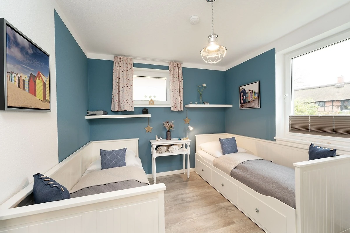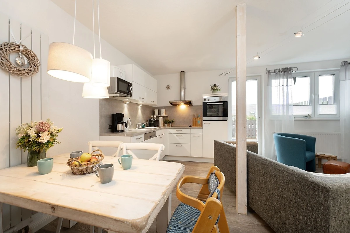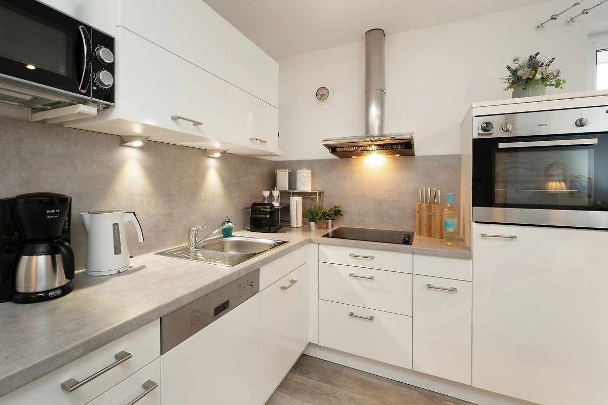 Herzlich Willkommen im Urlaub. Erleben Sie Ihre ganz persönlichen Sternstunden in der Ferienwohnung Sternhus. Das Objekt überzeugt durch seine liebevoll ausgesuchte Einrichtung mit Wohlfühl-Garantie. Nehmen Sie Platz auf der Couch oder den beiden Sesseln im gemütlichen Wohnbereich und lassen Sie sich vom Smart-TV oder dem Bluetooth-Radio unterhalten. Zum Entspannen unter freiem Himmel können Sie hier die grosszügige möblierte Terrasse betreten, auf der Sie sich gut geschützt aufhalten können. Auch Grillen ist auf der Terrasse erlaubt – aber vielleicht möchten Sie Ihre neuen Urlaubsrezepte lieber drinnen ausprobieren? Die gut ausgestattete Küche ist zum Wohnbereich hin offen gestaltet und bietet vom Pürierstab über eine Nespresso-Maschine bis hin zum Geschirrspüler diverse Annehmlichkeiten. Eine geruhsame Nacht finden Sie in den beiden Schlafräumen: Ein Zimmer ist mit einem Doppelbett (2x 90x200cm), einem Kleiderschrank sowie einem zusätzlichen TV-Gerät ausgestattet. In dem anderen Zimmer stehen zwei Einzelbetten (ja 80x200cm) und ein Kleiderschrank. Verdunkelt werden alle Fenster mit Plissees. Angenehmen Komfort bieten ein helles Gäste-WC sowie ein modernes Badezimmer mit Fenster, bodengleicher Dusche, Handtuchwärmer und Kosmetikspiegel. Hier können Sie prima in den neuen Tag starten. Für Ausflüge entlang der Ostseeküste steht Ihnen ein Bollerwagen zur Verfügung.