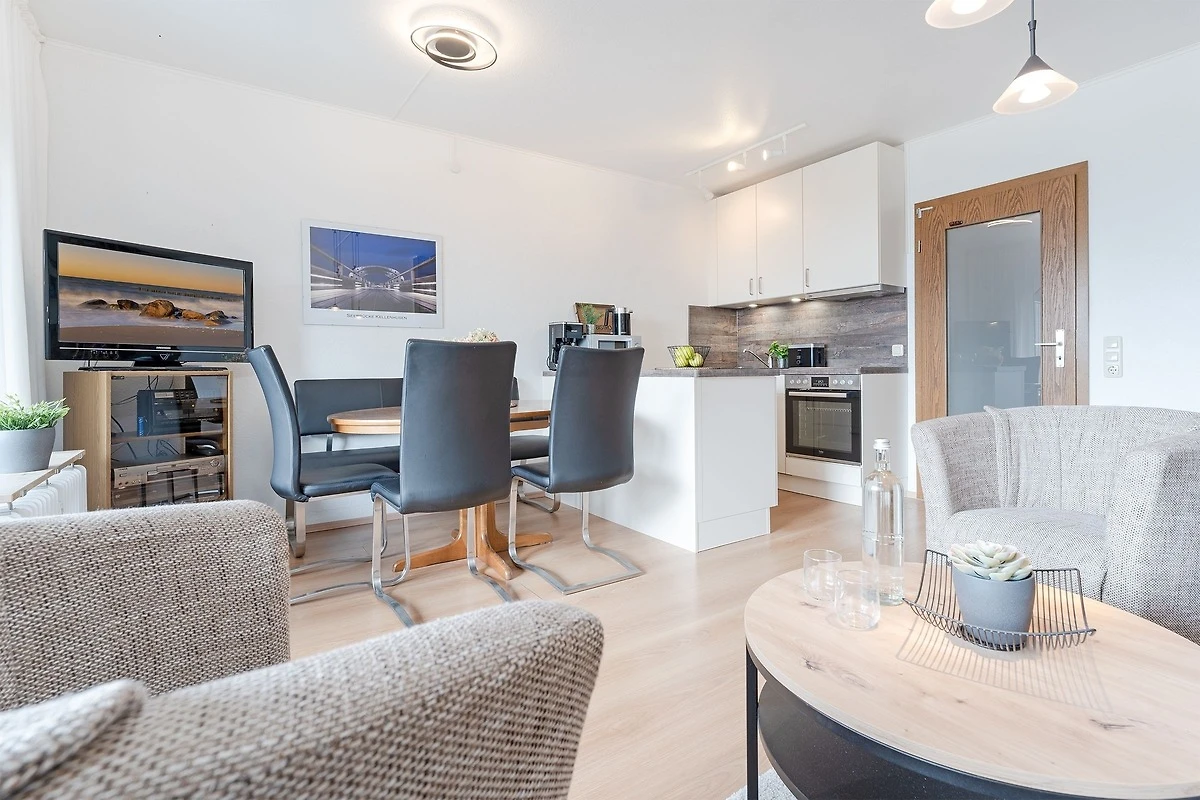 Geniessen Sie Ihren nächsten Ostseeurlaub in Kellenhusen: charmante 2-Zimmer-Ferienwohnung im 2. Stock mit Balkon, Gemeinschaftsgarten und einer Wohnfläche von ca. 41 m² für bis zu 3 Personen.