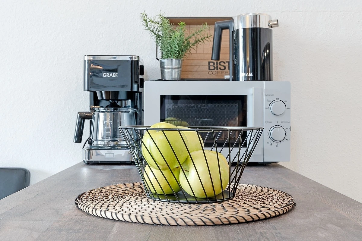 Zwischen Wald und Wellen – die Ferienwohnung Walblick in der Wohnanlage im Schützenweg ist rund 200 Meter von den Ostseewellen entfern. Die liebevoll ausgesuchte Einrichtung sorgt für Behaglichkeit. Das kuschelige Sofa lädt zum Entspannen ein – genauso der möblierte Balkon. Auch im Gemeinschaftsgarten können Sie Ihre Auszeit geniessen. Die gute Ausstattung der offenen Küche mit Senseo-Maschine wird Sie erfreuen. Ein Tresen fungiert als Raumteiler, sodass Sie gemütlich am Esstisch speisen können. Nach einem schönen Urlaubstag nächtigen Sie im bequemen Doppelbett (140x190 cm) im Schlafzimmer. Zudem lässt sich die Couch im Wohnzimmer in ein Bett (120x195 cm) verwandeln. Das Bad verfügt über eine Wanne.