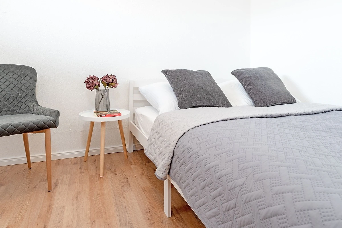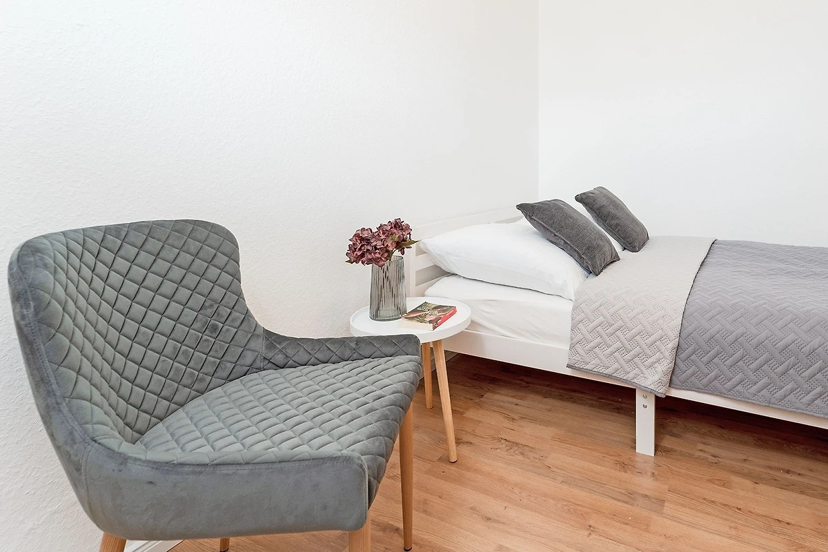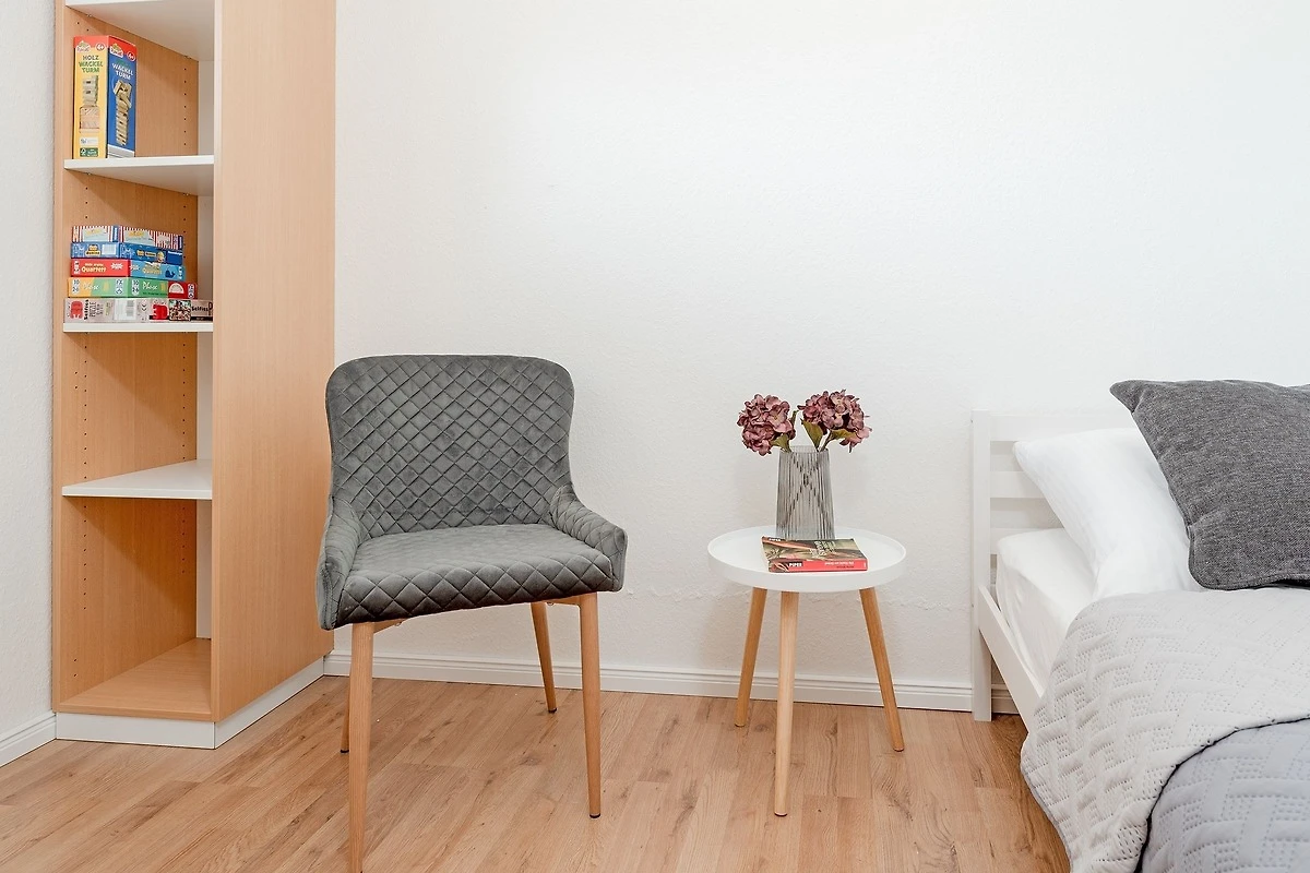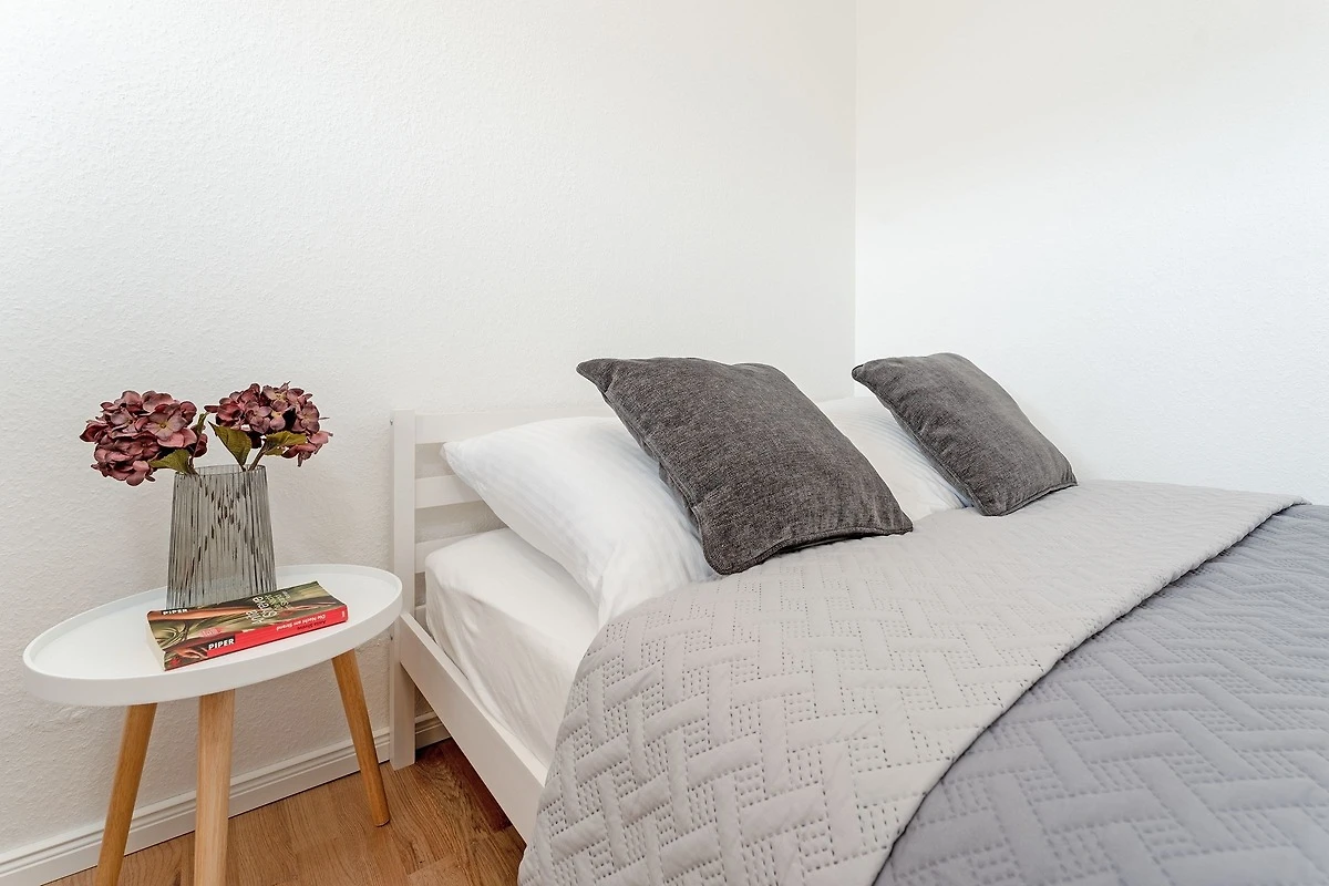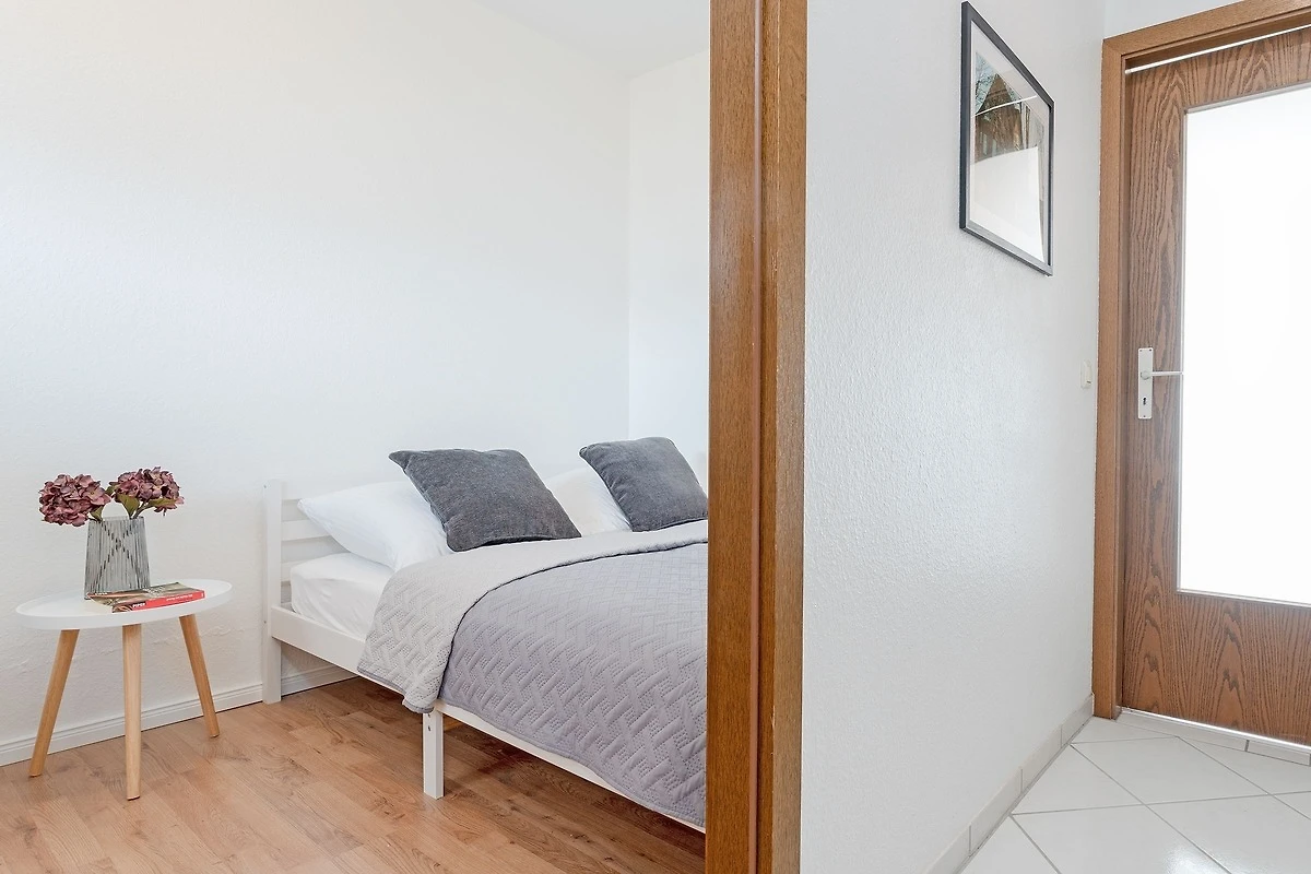 Die Unterkunft war von der Ausstattung, Lage, Sauberkeit hervorragend, die Schlafzimmersituation allerdings nicht sehr befriedigend . Das Bett quer in die Ecke zu stellen ist sicherlich der Raumgröße geschuldet, aber Nachts über den nebenliegenden Partner klettern zu müssen ist alles andere als schön. Außerdem ist das Bett für Menschen ab 180 cm nicht zu nutzen, da es eindeutig zu kurz ist. Ansonsten bedanken wir uns für den wirklich tollen Service, Kraushaar -Immobilien ist diesbezüglich uneingeschränkt zu empfehlen .