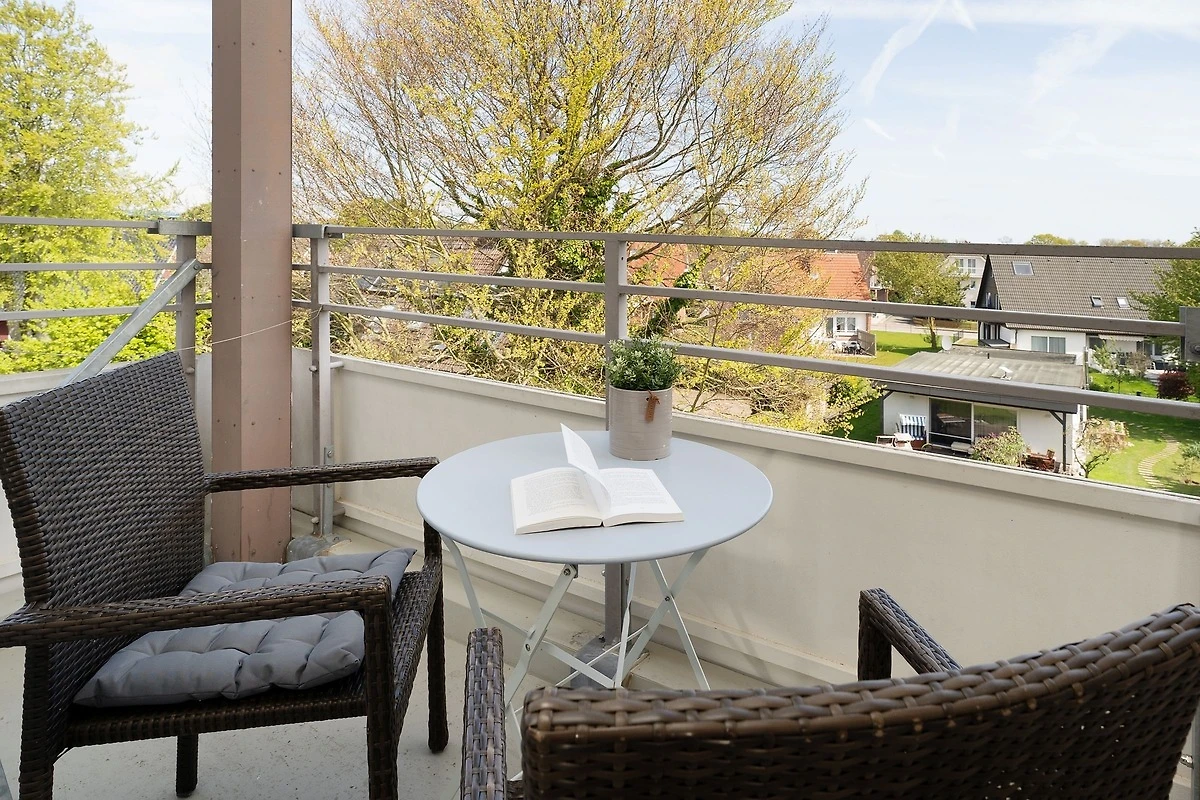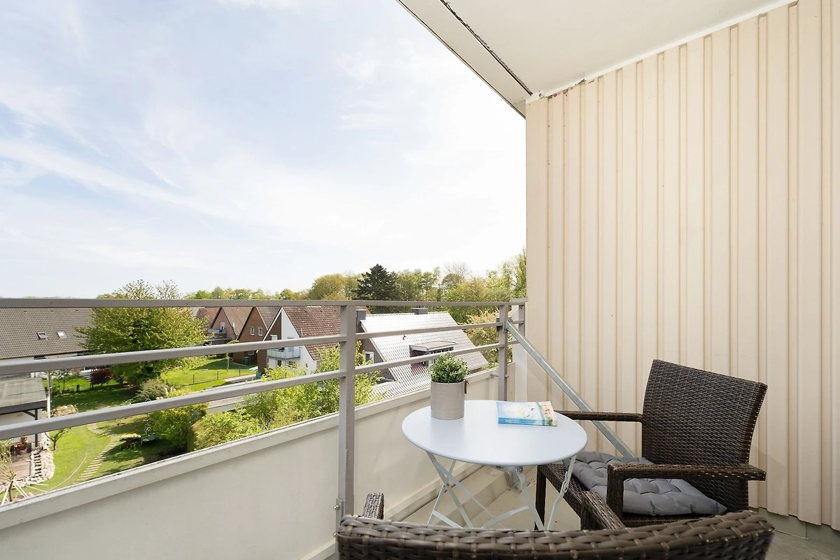 Urlaub in bester Lage von Kellenhusen: strandnahe, ca. 43 m² grosse 2- Zimmer-Ferienwohnung im 3. Stock mit Balkon für bis zu 4 Personen.