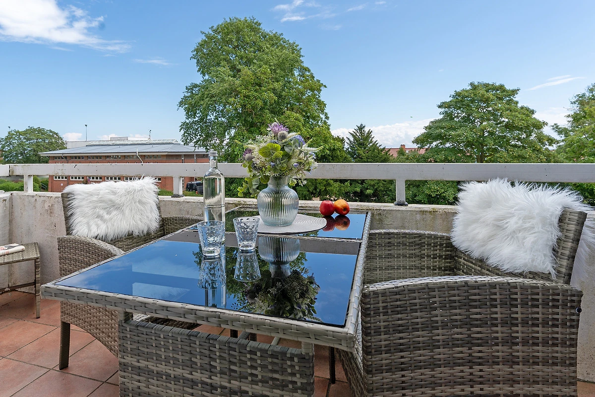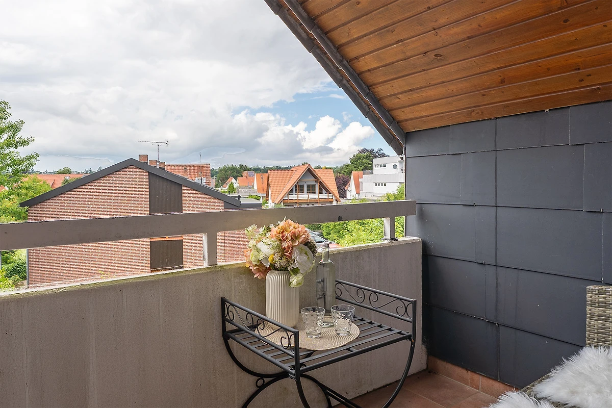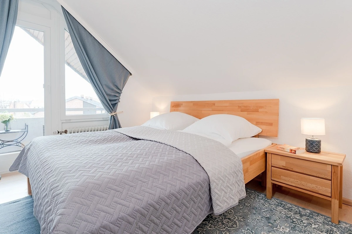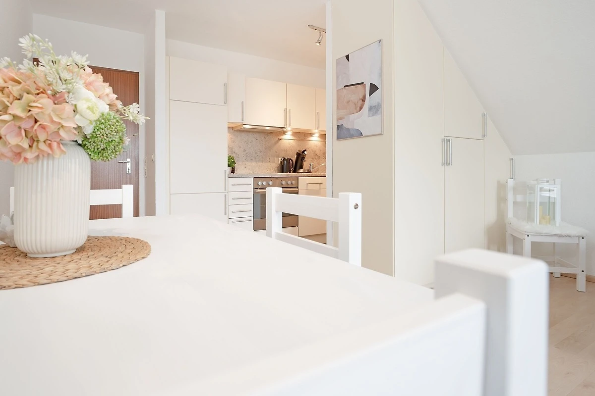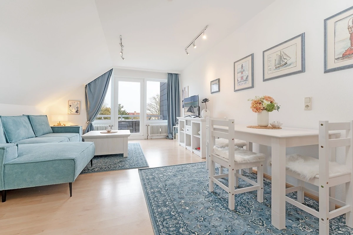 Urlaub in bester Lage von Kellenhusen: strandnahe, ca. 42 m² grosse 2-Zimmer-Ferienwohnung im 2. Stock (Dachgeschoss) mit 2 Balkonen für bis zu 2 Personen.