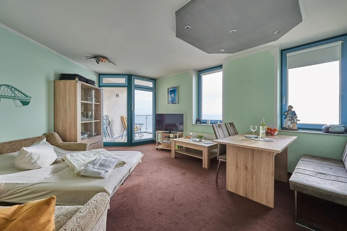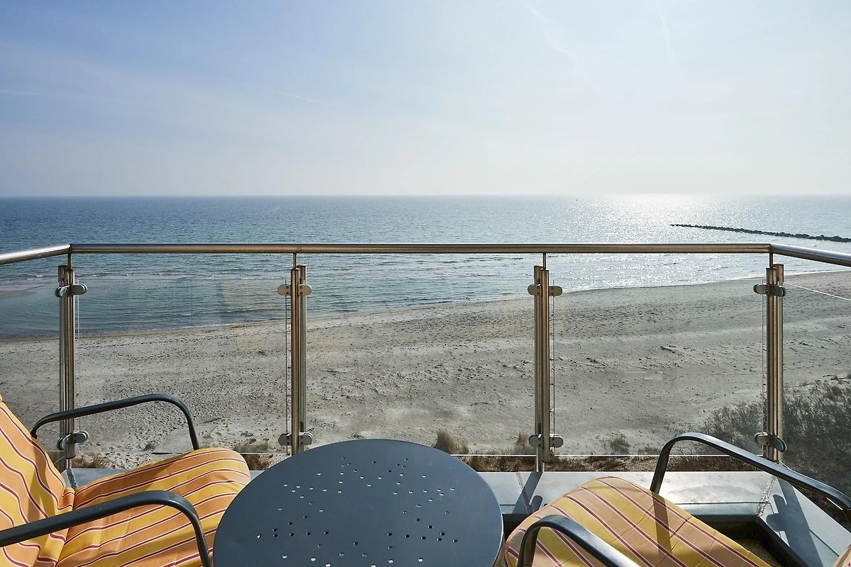 Traumhafte 2-Zimmer-Ferienwohnung für bis zu 3 Personen auf 47 m² Wohnraum in der Appartementanlage Strandburg am Südstrand der Ostseeinsel Fehmarn. Im 3. Stock mit Balkon und grandiosem Meerblick.