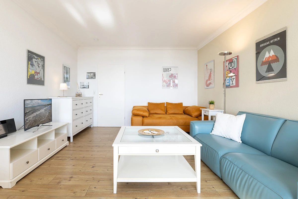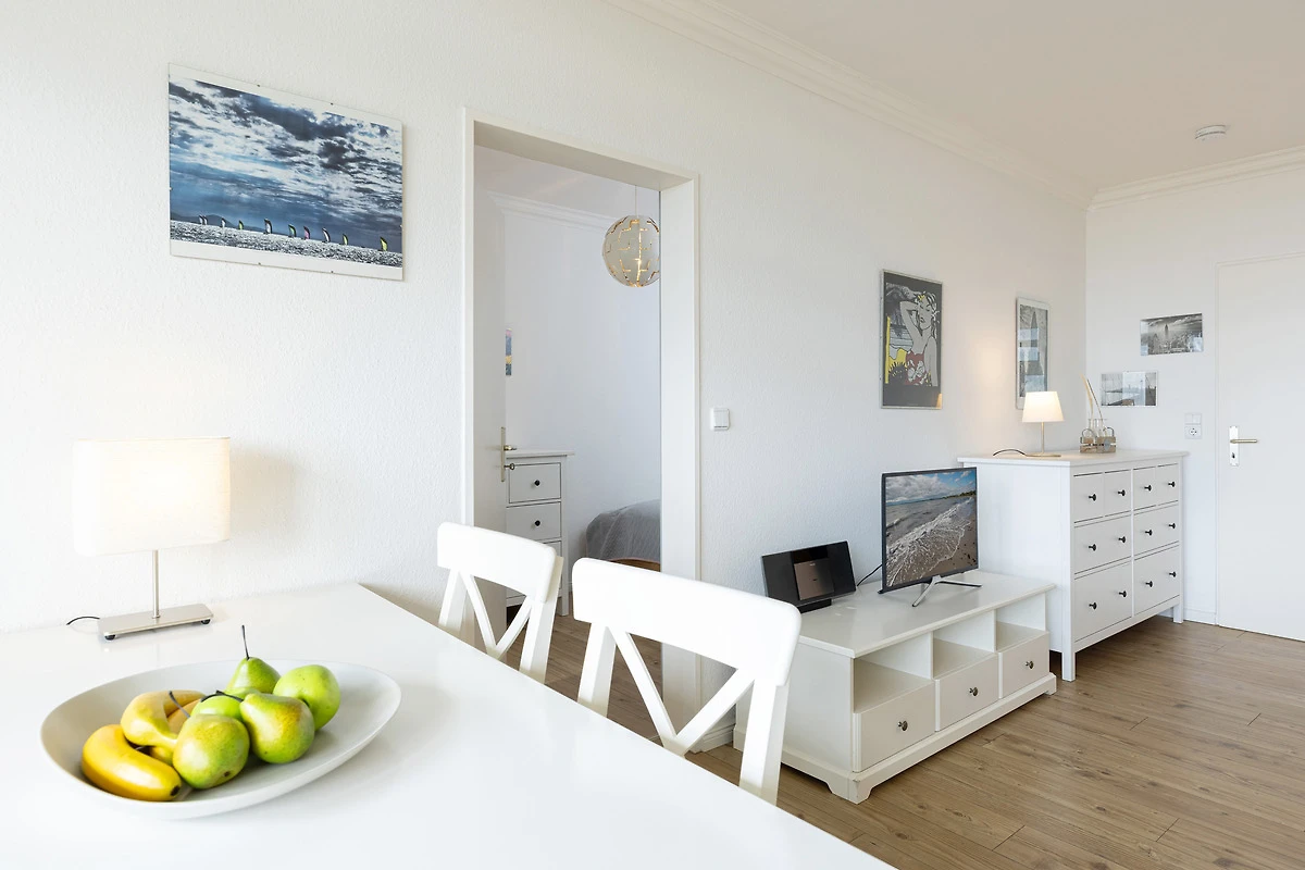 Die traumhafte, ca. 49 m² grosse 2-Zimmer-Ferienwohnung befindet sich im 3. Stock eines 5-stöckigen Appartementhauses mit Fahrstuhl direkt am Südstrand des Ferienzentrums Fehmarn (Burgtiefe) zwischen dem Yachthafen und Ostseestrand. Mit Balkon und Meerblick.