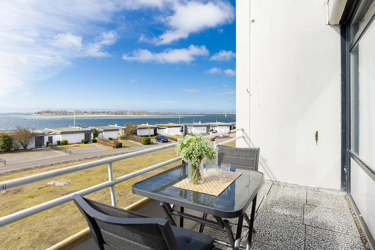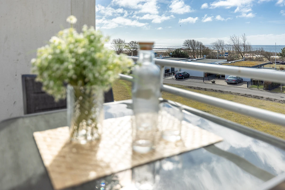 In Burgtiefe am Südstrand: charmante, ca. 49 m² grosse 2-Zimmer-Ferienwohnung im 2. Stock mit Aufzug, Balkon und Meerblick für bis zu 4 Personen.