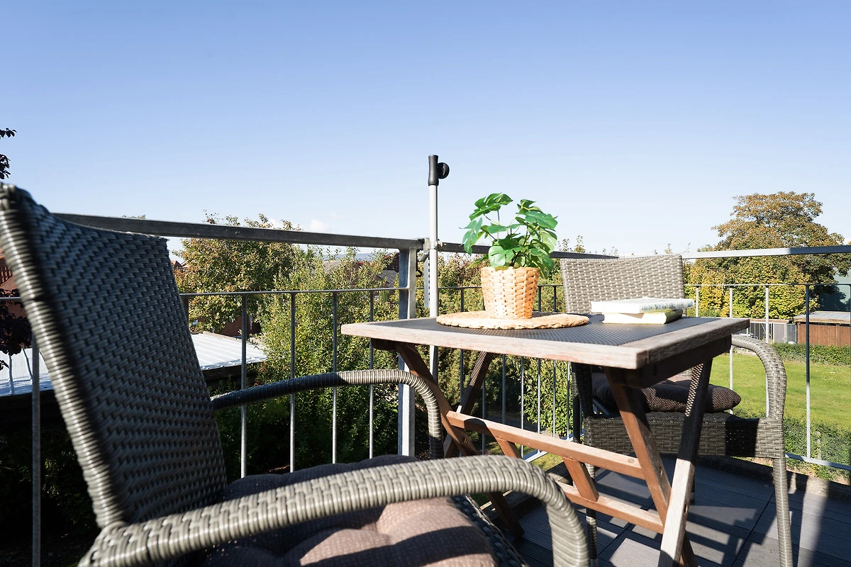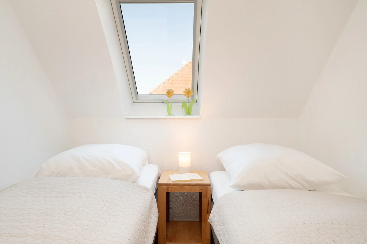 Die charmante Maisonettewohnung punktet mit einem hellen Wohn- und Essraum mit bequemer Polstergarnitur, TV-Gerät, Essecke sowie Zugang zum möblierten Balkon. Die separate Küche ist mit allen Annehmlichkeiten, wie z. B. Spülmaschine, Herd, Backofen und Mikrowelle ausgestattet. Im grossen Schlafzimmer befinden sich ein Doppelbett (2x 80x200 cm, offenes Fussteil) sowie ein Kleiderschrank. Im zweiten Schlafzimmer stehen zwei Einzelbetten (je 90x200 cm) und ebenfalls ein Kleiderschrank. Das Badezimmer mit Fenster erwartet Sie mit Dusche, WC und modernem Waschtisch.