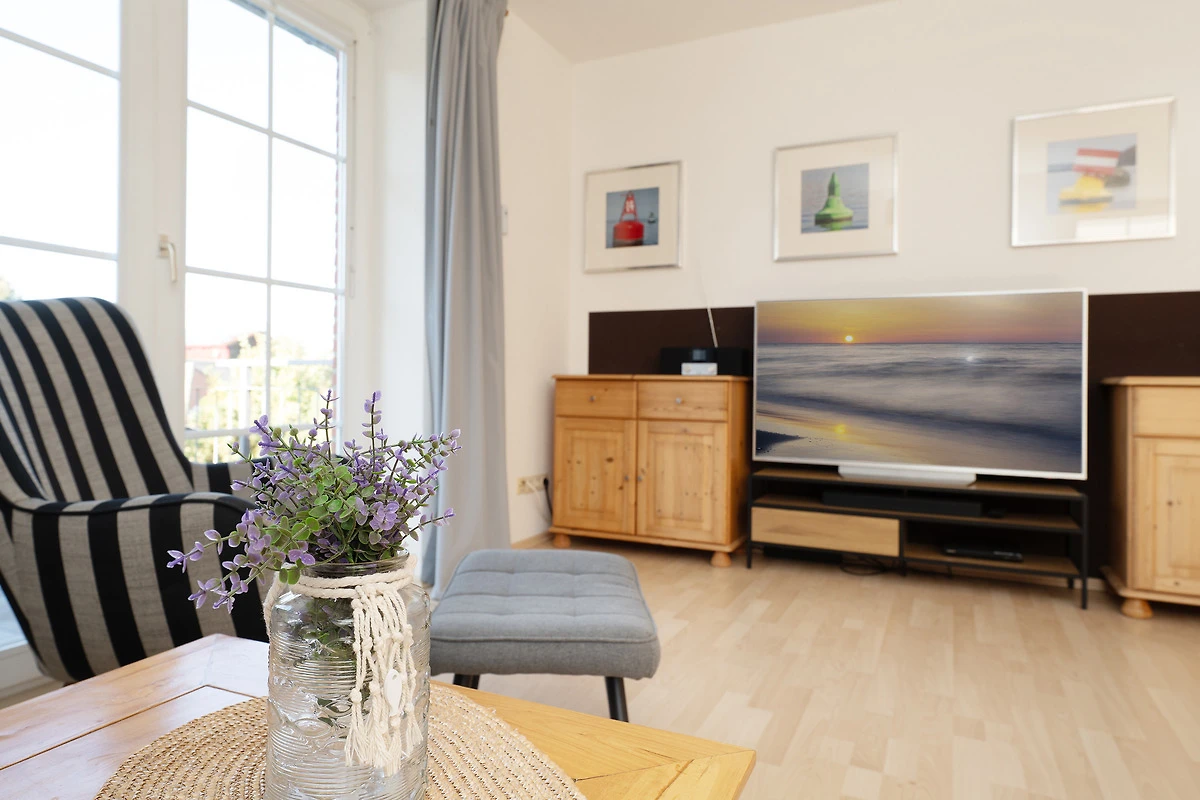 Die ca. 73 m² grosse 3-Zimmer-Ferienwohnung Heber für bis zu 4 Personen liegt im Süden der Ostseeinsel Fehmarn im kleinen Ort Wulfen direkt am Golfplatz. Die Wohnung im 1. Stock ist über eine separate Wohnungstür und eine Treppe erreichbar.